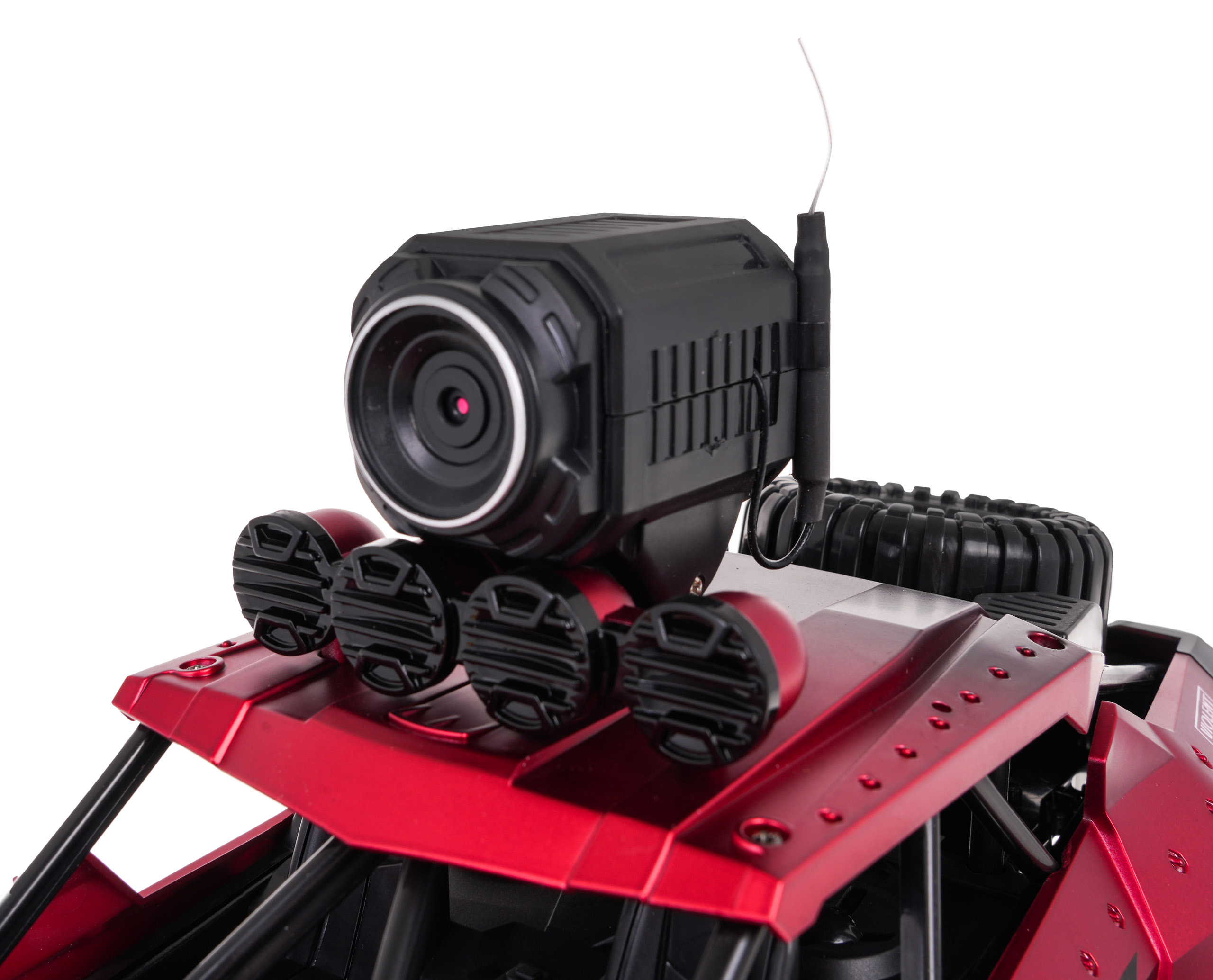 | Terénní vozidlo vyrobené v měřítku 1:12 s kamerou je určeno pro děti od 8 let. Vozidlo má velké gumové pneumatiky a tlumiče nárazů a poradí si i s nerovným terénem. Konstrukce vozu je odolná proti nárazu, nárazu a pádu a zlepšuje výkon vozu při jízdě. Pásový traktor dosahuje rychlosti až 28 km/h. Hračka se ovládá pomocí dálkového ovladače s frekvencí 2,4 GHz. Napájení pomocí 7,4V baterie 1200 mAh (součástí balení) - auto a 4 x AA (nejsou součástí balení) - dálkové ovládání. Technické údaje: - měřítko 1:12, - dálkové ovládání 2.4G, - velkokapacitní lithiová baterie 7,4 V 1200 mAh, - osvětlení LED v přední části vozidla, - kovová karoserie, - antikolizní konstrukce, - tlumiče, - nastavení řízení, - směr vpřed a vzad a zatáčení vpravo a vlevo, - velké gumové pneumatiky, - rychlost až 28 km/h. | |