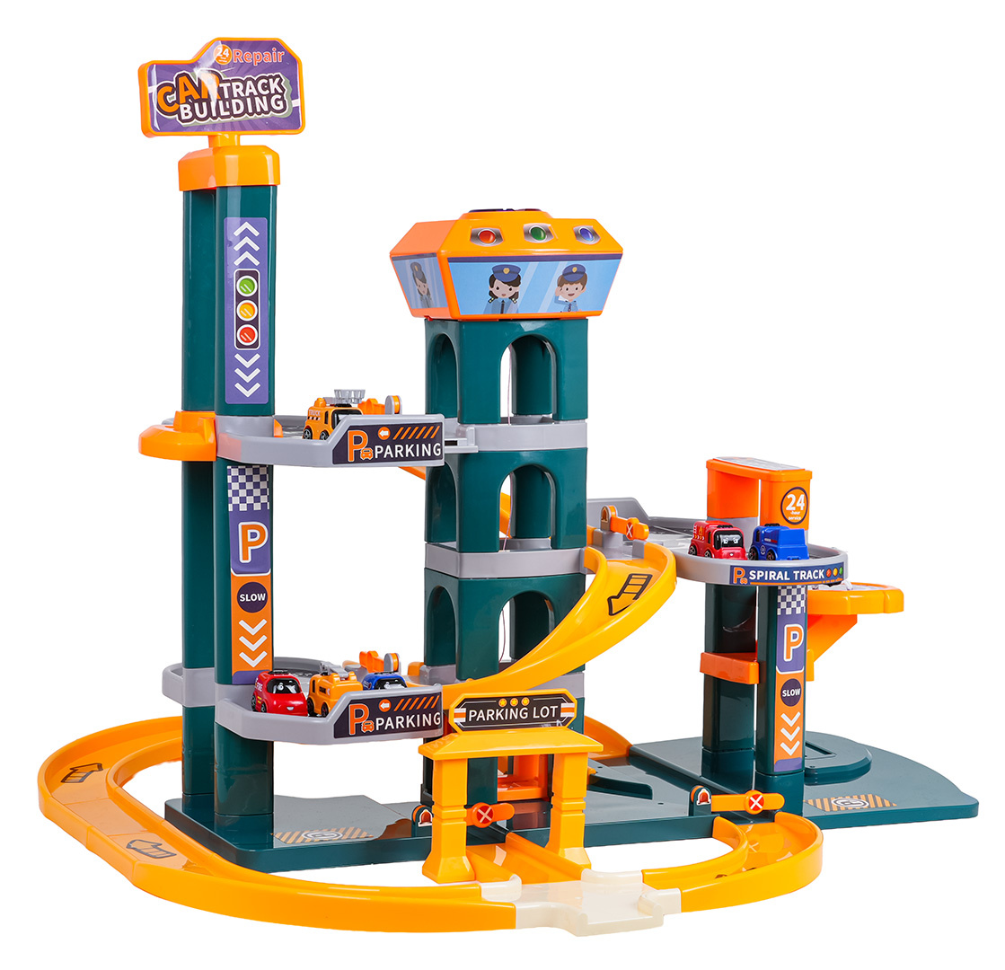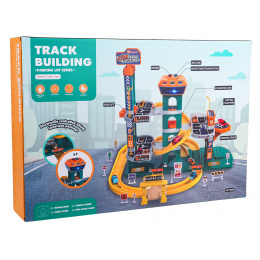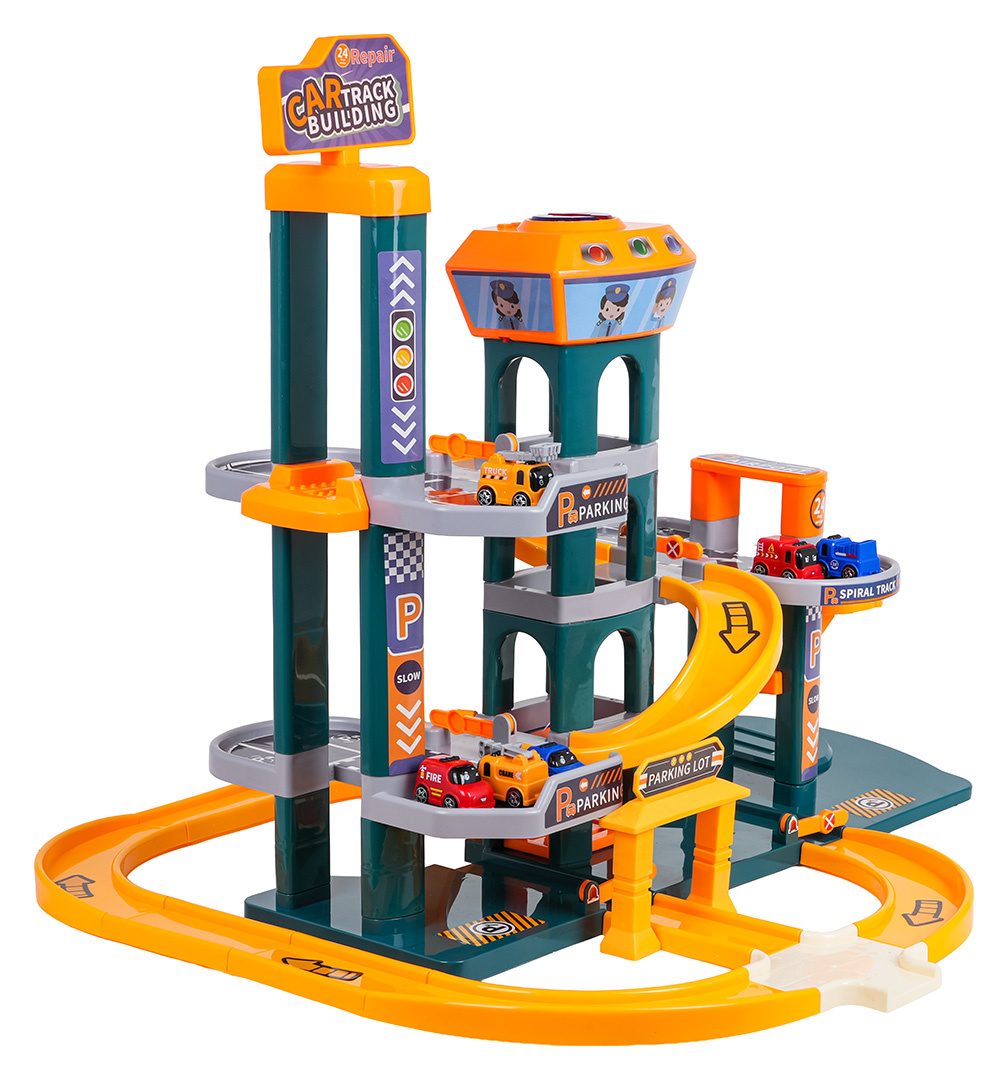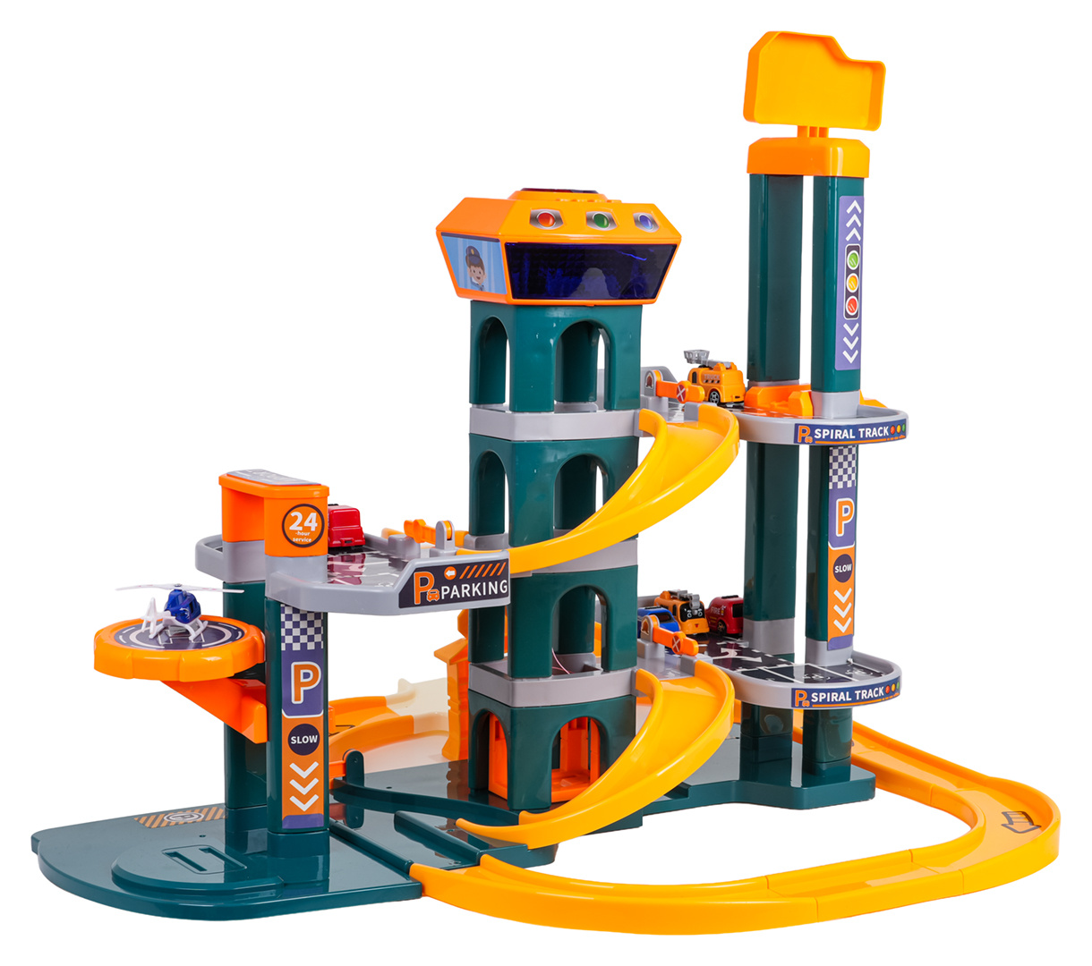 Skvěle provedené parkoviště s efektem zvuku a světla pro děti od tří let. Sada byla vyrobena z nejkvalitnějších materiálů bezpečných pro děti v živých barvách. Parkoviště má 2 úrovně, na kterých se nacházejí parkovací místa. Dostat se k nim můžeme pomocí elektrického výtahu napájeného bateriemi typu 3 x AA 1,5V (nejsou součástí balení). Na vrcholu výtahu se nachází panel zodpovědný za sjezd a výjezd a zvukové efekty ve formě veselých melodií, zvuků vozidel, sirény a světelné efekty jako blikající tlačítka vjezdu a sjezdu. Autíčka mohou sjíždět z kopce výtahem nebo skluzavkami. V sadě se nachází šest autíček a helikoptéra. Máme také četné lampy, dopravní značky a závory.