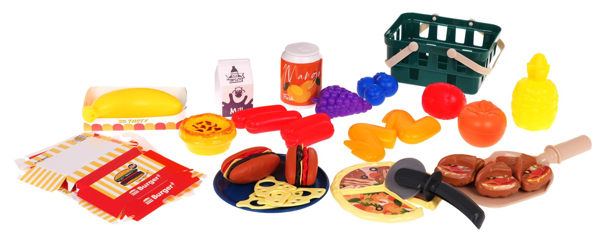 Sada se skládá z 32 pečlivě vyrobených dílků , včetně dvou košíků různých velikostí, plastového ovoce , zeleniny , burgerů, tortill a dokonce i příslušenství na pizzu. Sada obsahuje banány, hrozny, ananas, jahody a další potraviny, jako jsou párky v rohlíku, klobásy a kuře .