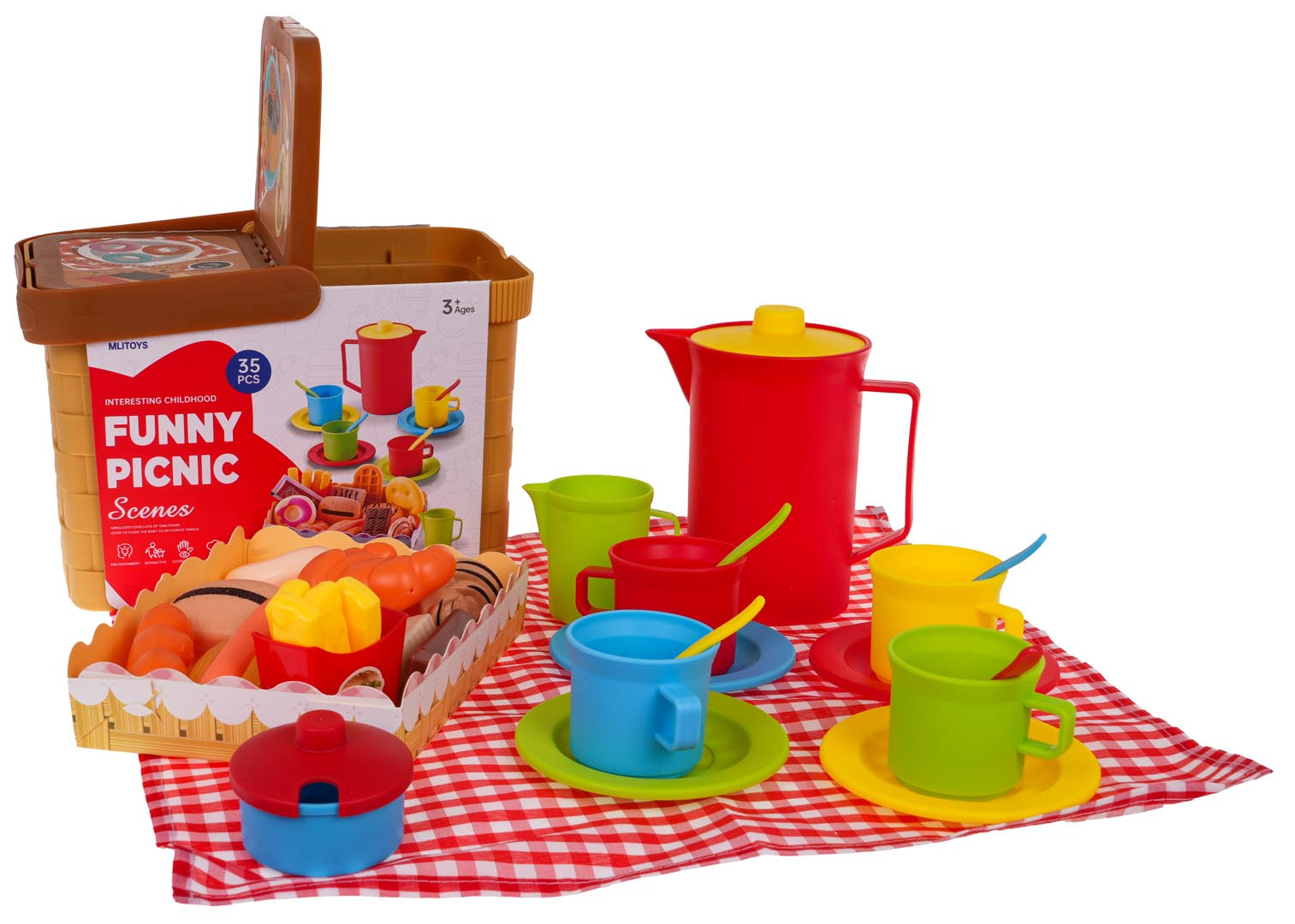 Bogato wyposażony zestaw piknikowy to propozycja dla dzieci powyżej 3-go roku życia, które uwielbiają bawić się w plenerze. Kolorowy koszyk pełen różnorodnych akcesoriów i atrap żywności wprowadza maluchy w świat radosnej zabawy, rozwijając jednocześnie ich wyobraźnię.