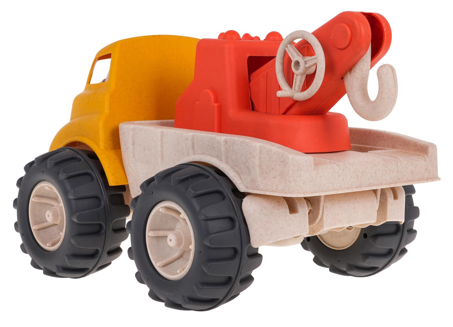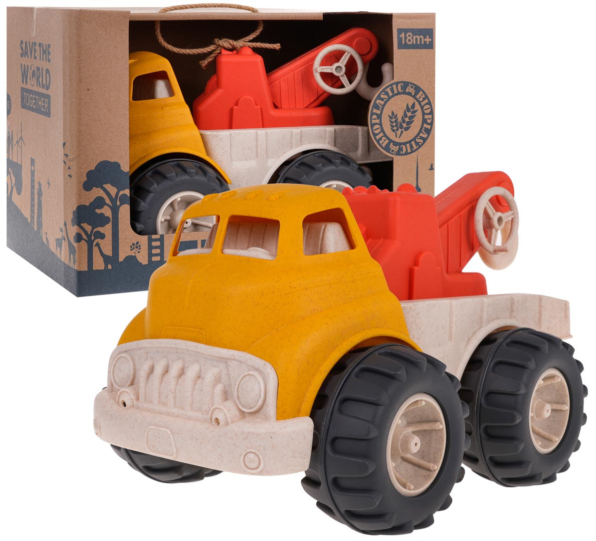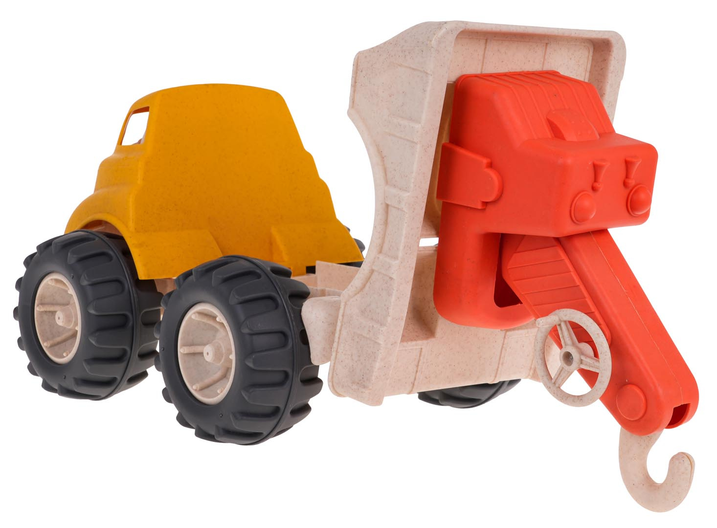 Jeřáb vyrobený z bioplastu pro děti od 18 měsíců. Eko-materiál je bezpečný pro děti a šetrný k životnímu prostředí. Vozidlo je odolné a odolné vůči poškození, má pohyblivé prvky. Ručně můžeme zvedat a spouštět rameno jeřábu, jemně jím pohybovat doprava a doleva a pomocí kličky vysouvat hák. Díky velkým kolům se vozidlo ideálně hodí pro zábavu venku, např. na hraní v písku.