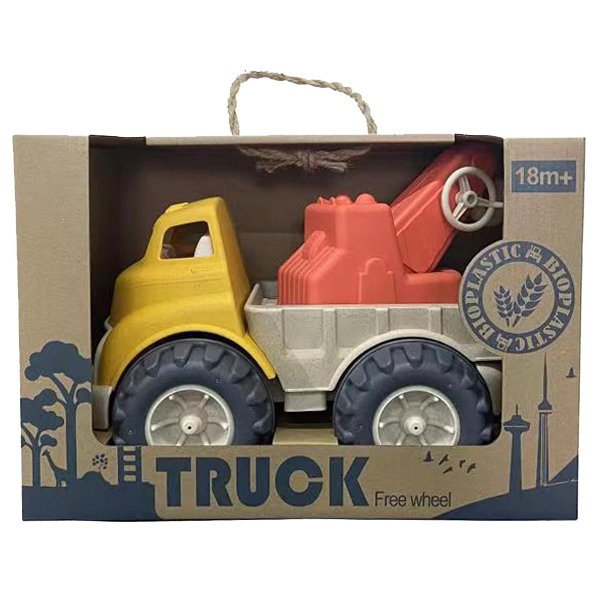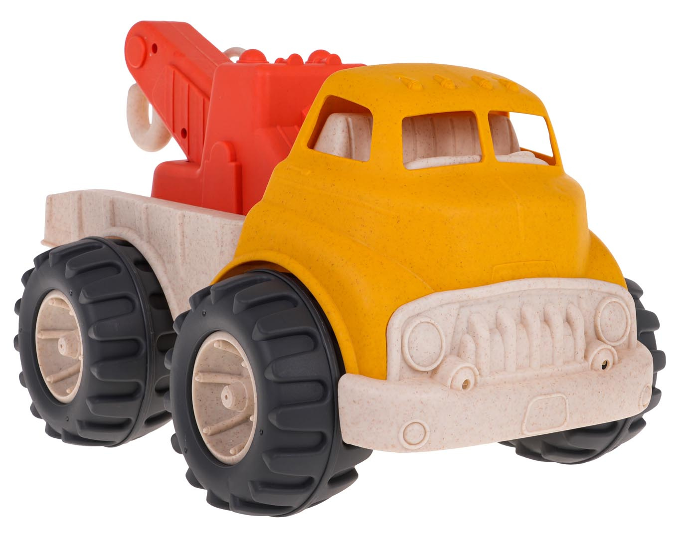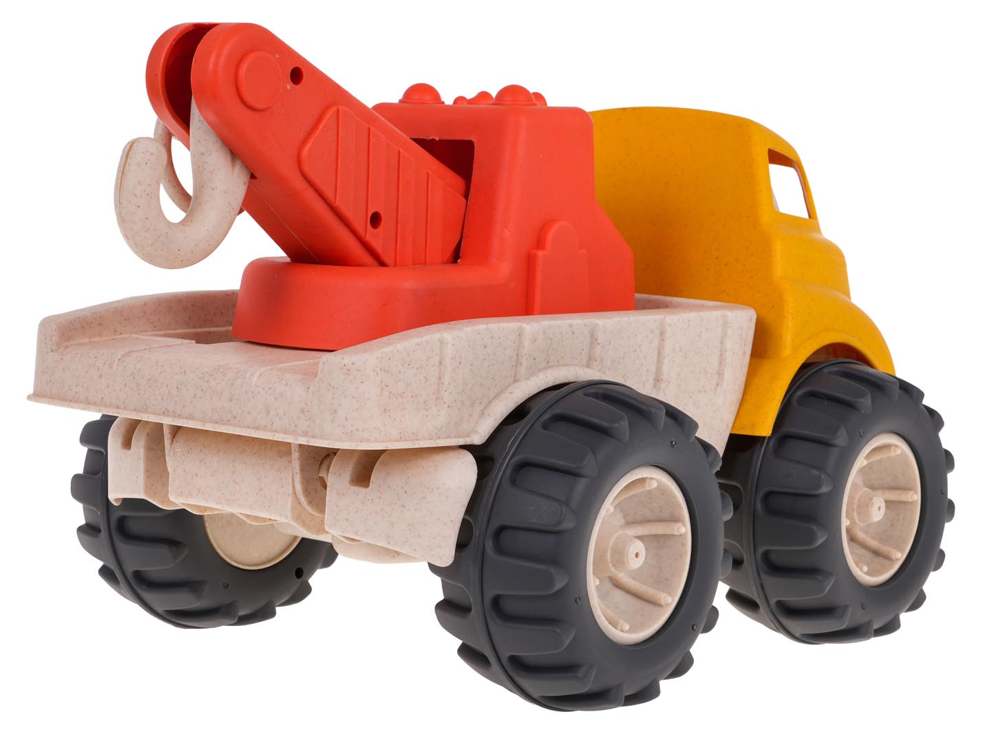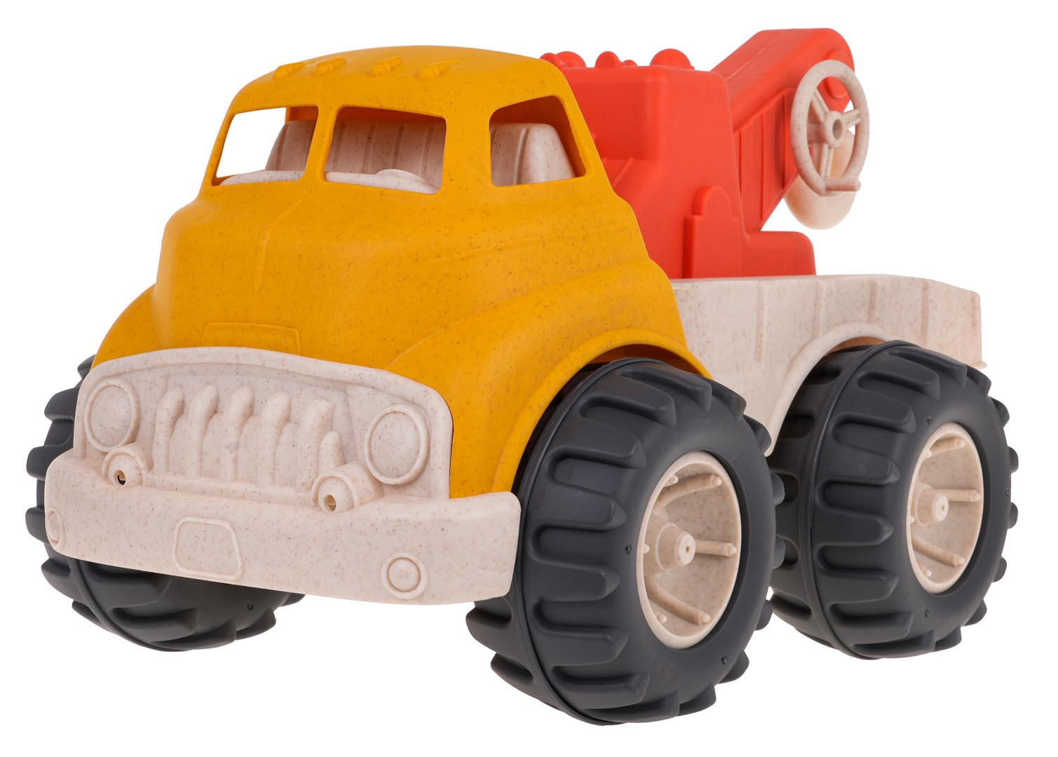 Jeřáb vyrobený z bioplastu pro děti od 18 měsíců. Eko-materiál je bezpečný pro děti a šetrný k životnímu prostředí. Vozidlo je odolné a odolné vůči poškození, má pohyblivé prvky. Ručně můžeme zvedat a spouštět rameno jeřábu, jemně jím pohybovat doprava a doleva a pomocí kličky vysouvat hák. Díky velkým kolům se vozidlo ideálně hodí pro zábavu venku, např. na hraní v písku.