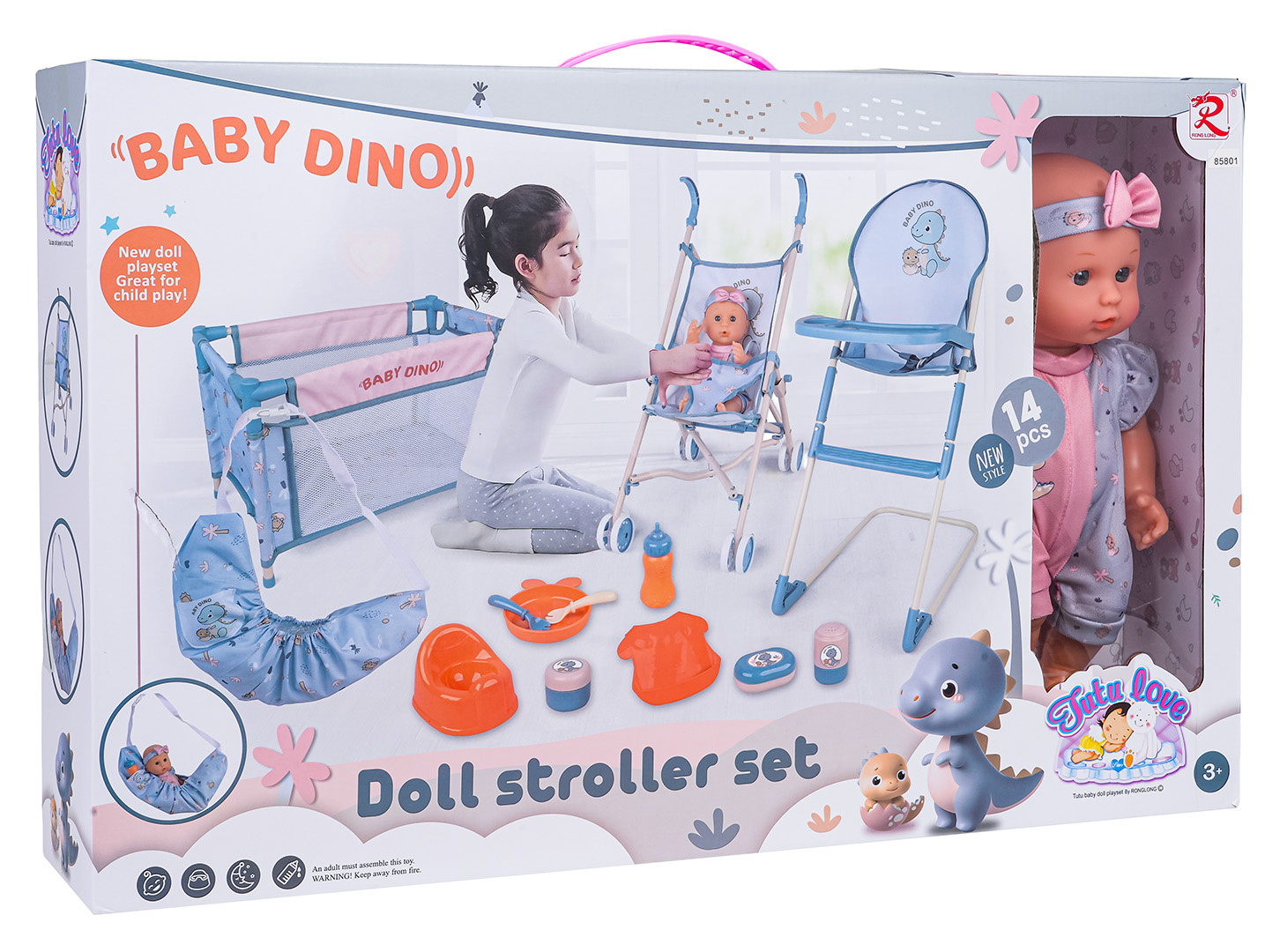 Bohatě vybavená sada panenka a doplňky pro děti od tří let. Sada se skládá ze 14 prvků vyrobených z nejkvalitnějších materiálů v živých barvách. Roztomilá panenka je oblečená v barevných dupačkách a na hlavičce má čelenku s mašličkou. Lala má pohyblivé ručičky a nožičky. V sadě s panenkou je také cestovní postýlka, sportovní kočárek, jídelní židlička, nočník, láhev a příslušenství pro krmení a péči.