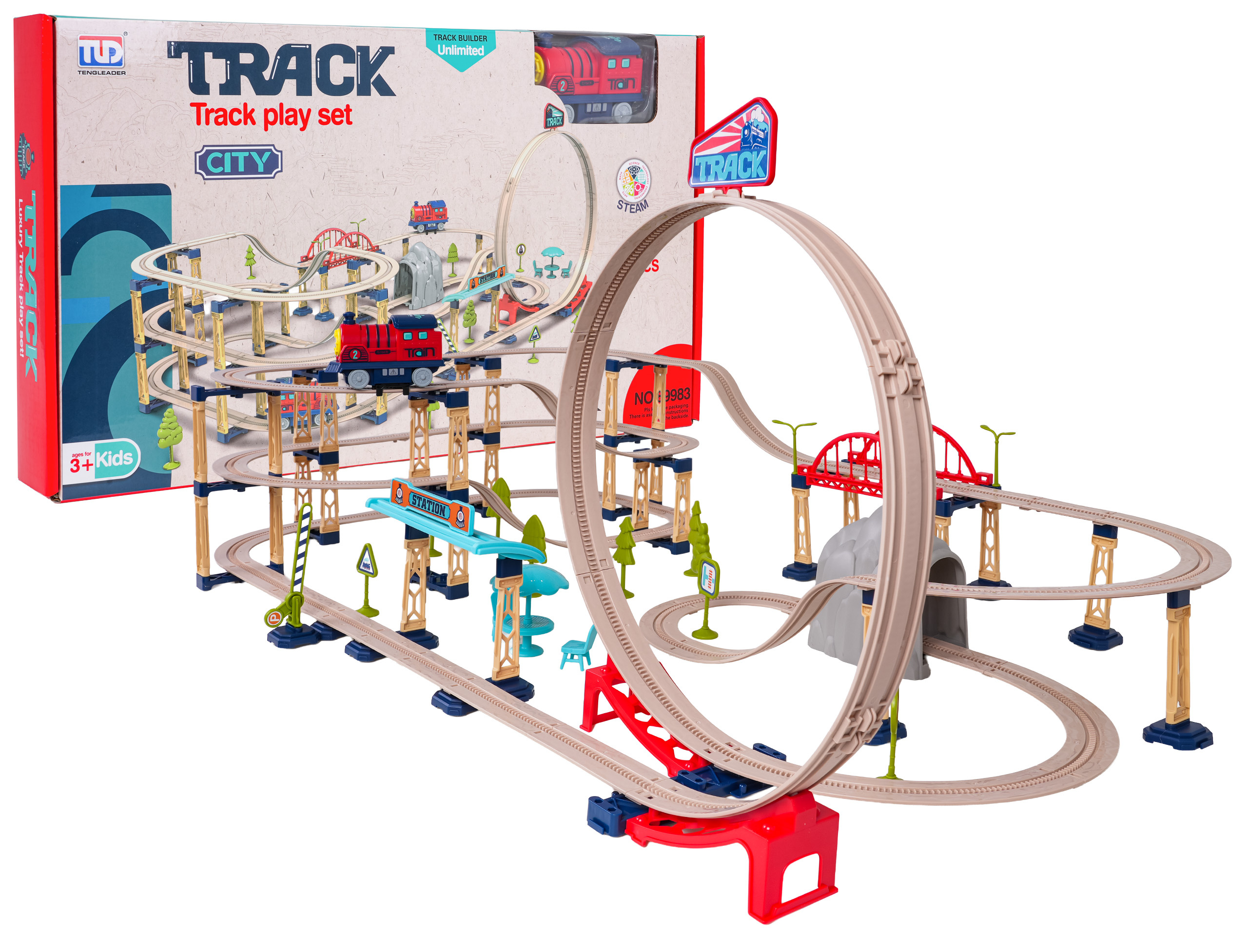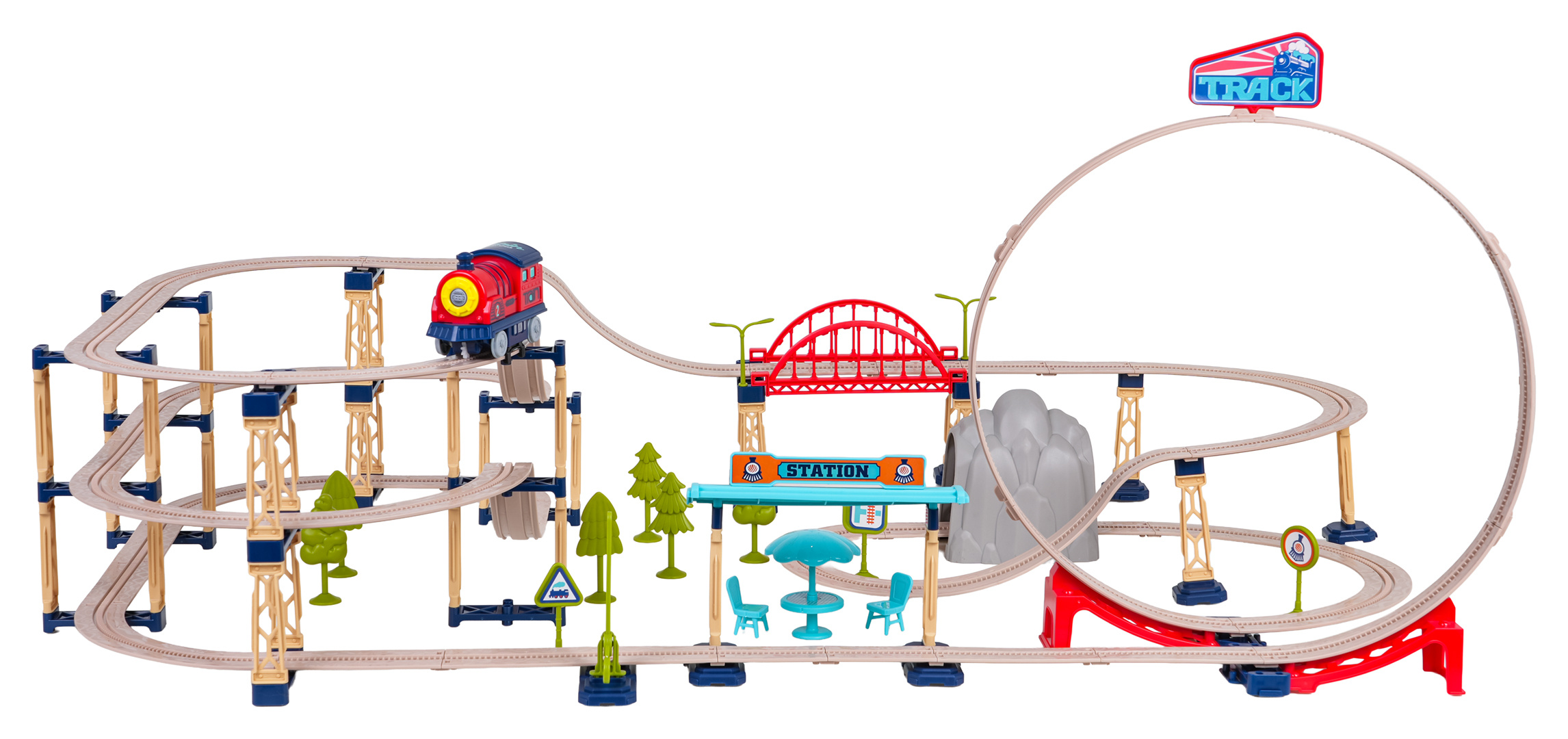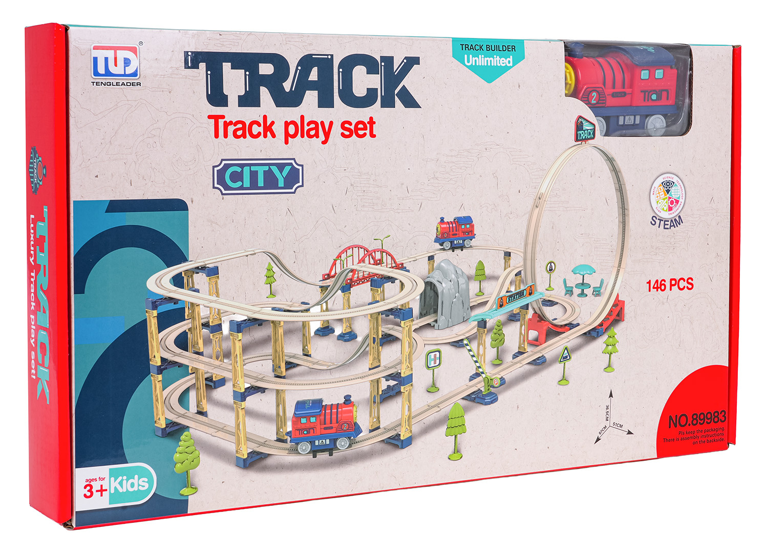 | | Bohatě vybavená stavebnice, trať a vlak pro děti od tří let. V sadě se nachází až 146 prvků, jako jsou konstrukční části dráhy, smyčka, mosty, nadjezdy, nálepky a různé zatáčky a prvky dráhy, dopravní značky, stromy, tunely, je zde také vláček napájený bateriemi 2x1,5V AAA (nejsou součástí sady). Mašinka se pohybuje vpřed po kolejích a vydává realistické zvuky. Sada nabízí mnoho možností vytváření rozsáhlých tras a jejich změny v závislosti na nápadu. Vaše dítě se projeví kreativitou a schopností prostorového plánování. Sada je vyrobena z bezpečných a odolných materiálů, které zaručují dlouhodobé používání.
