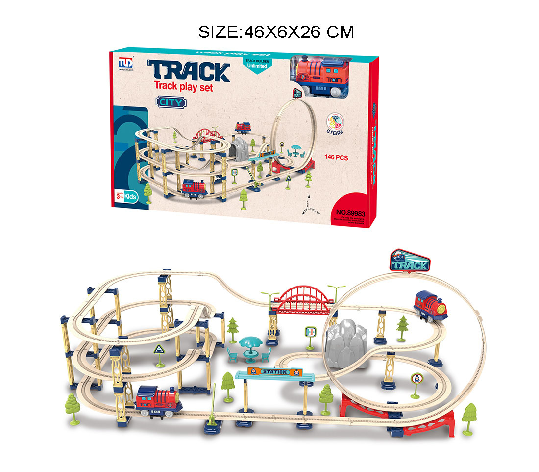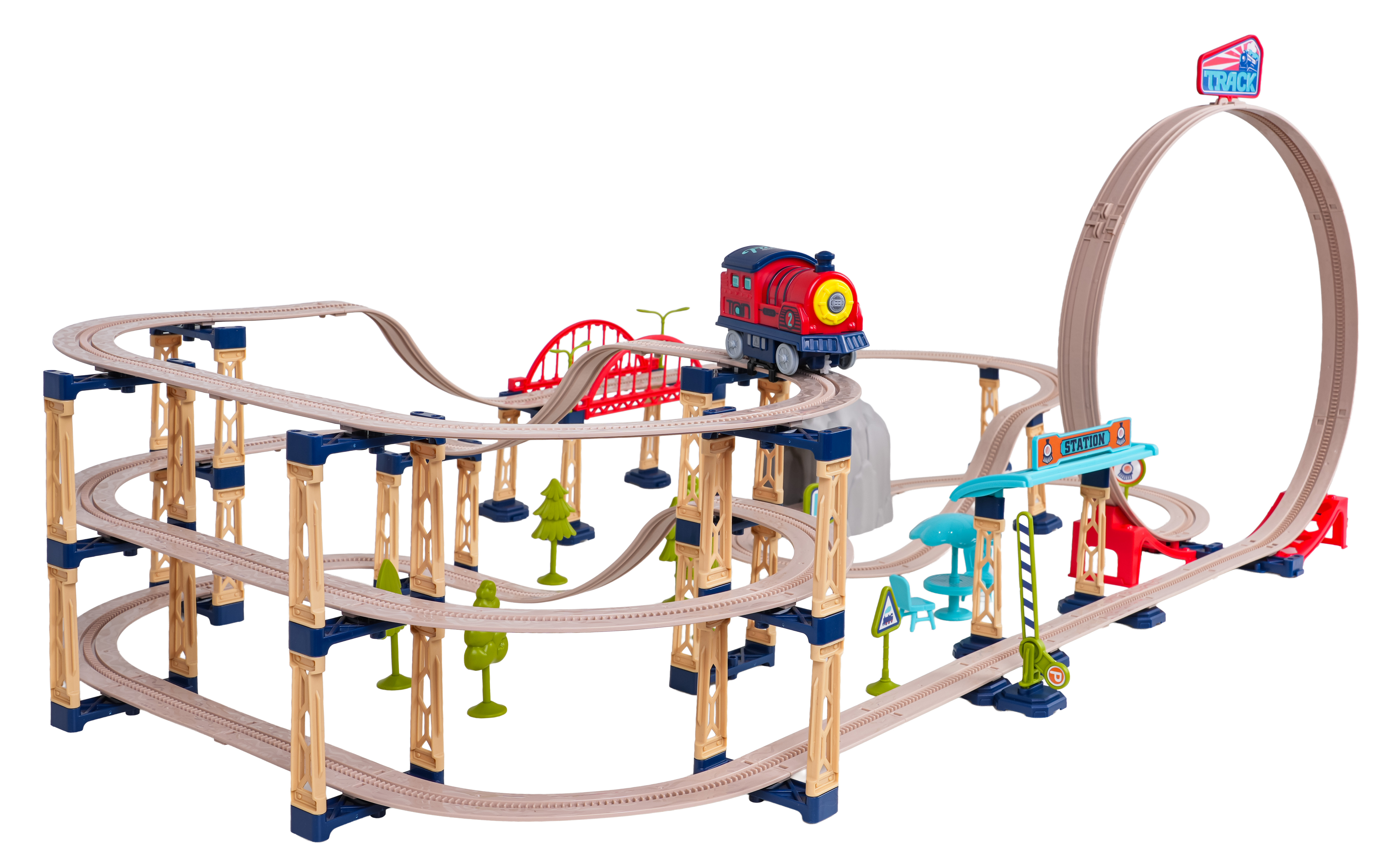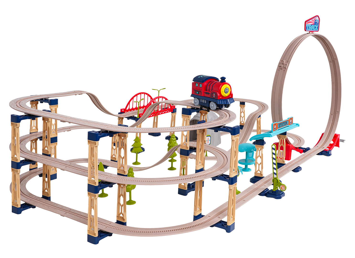 | | Bohatě vybavená stavebnice, trať a vlak pro děti od tří let. V sadě se nachází až 146 prvků, jako jsou konstrukční části dráhy, smyčka, mosty, nadjezdy, nálepky a různé zatáčky a prvky dráhy, dopravní značky, stromy, tunely, je zde také vláček napájený bateriemi 2x1,5V AAA (nejsou součástí sady). Mašinka se pohybuje vpřed po kolejích a vydává realistické zvuky. Sada nabízí mnoho možností vytváření rozsáhlých tras a jejich změny v závislosti na nápadu. Vaše dítě se projeví kreativitou a schopností prostorového plánování. Sada je vyrobena z bezpečných a odolných materiálů, které zaručují dlouhodobé používání.