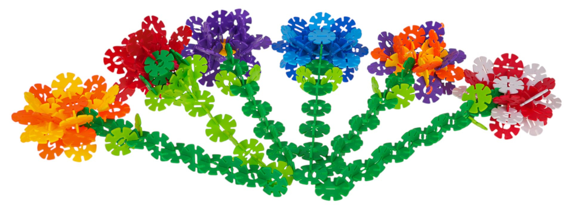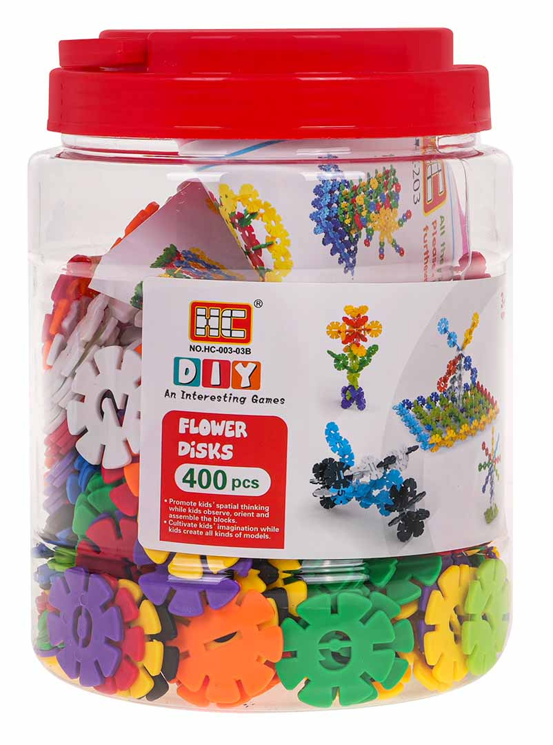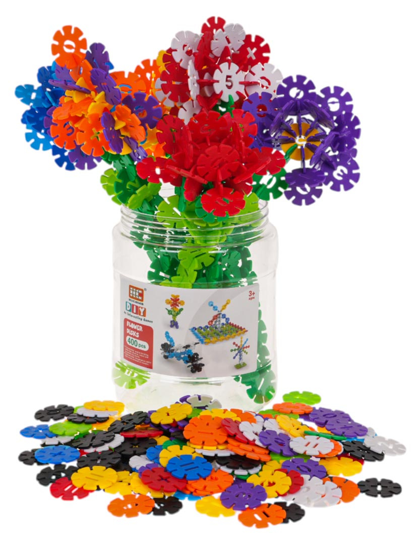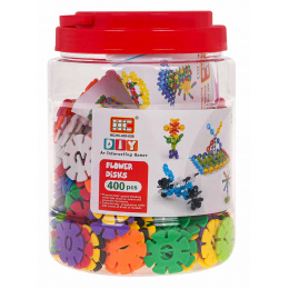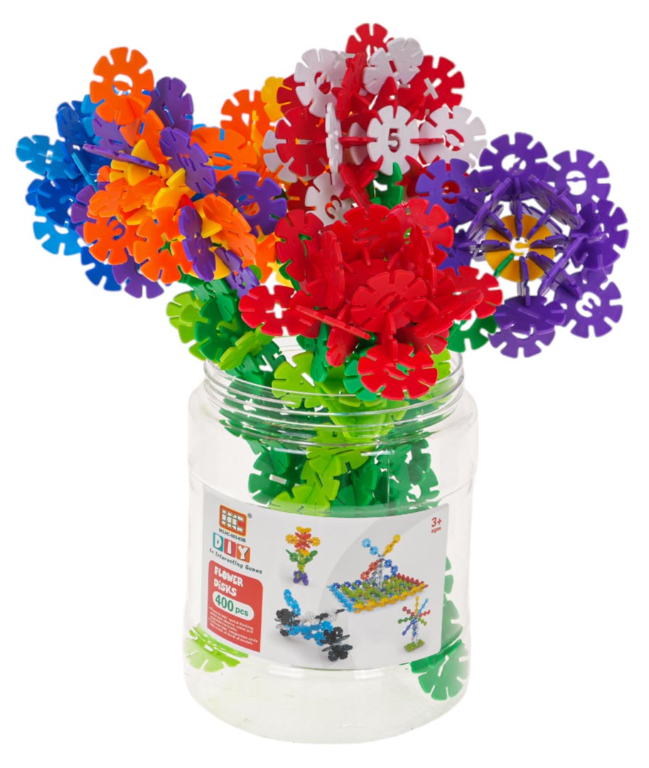 Sada kreativních kostek – spojek pro děti od 3 let. Kostky byly vyrobeny z plastu nejlepší kvality, lze je spojovat libovolným způsobem. Kostky podněcují kreativitu a logické myšlení. V sadě je 400 kusů kostek ve tvaru květinky v různých barvách. Jsou zabaleny ve sklenici s rukojetí na víčku, aby si je dítě mohlo vzít s sebou kamkoli.