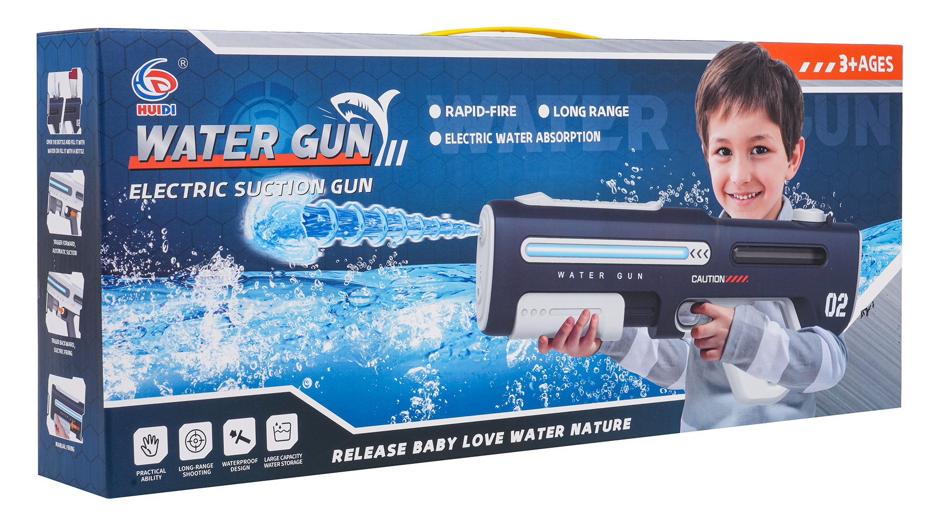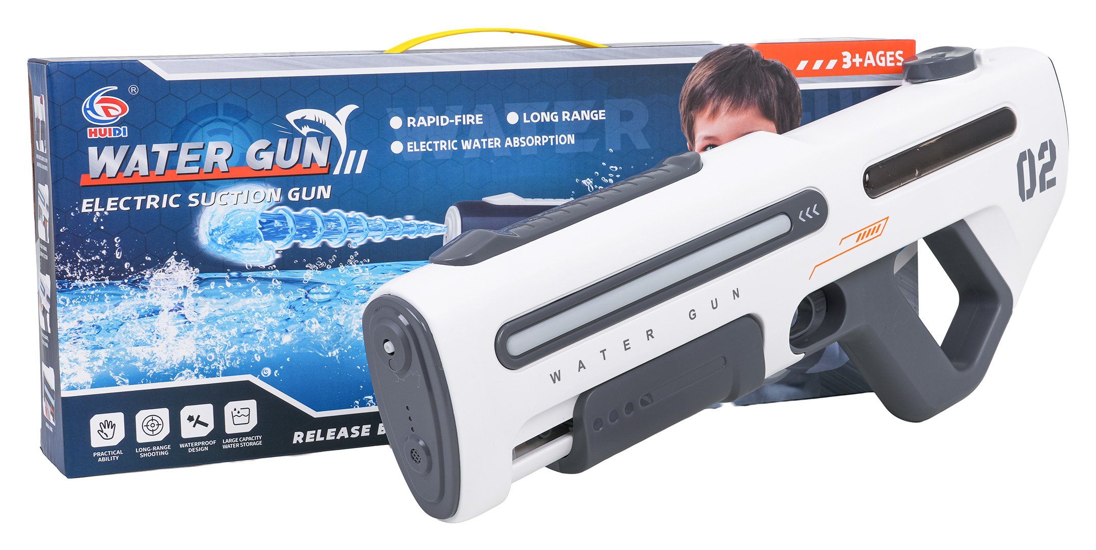 | Elektrická vodní pistole s podsvícením pro děti od tří let. Pistole je vyrobena z nejkvalitnějších materiálů, napájena je akumulátorem typu 7,4 V (včetně). Má podsvícení, což umožňuje zábavu i pozdě večer. Zásada fungování pistole je velmi jednoduchá. Doplníme nádržku umístěnou v horní části pistole vodou a stiskneme spoušť. Pistole může být také používána bez napájení, manuálně.