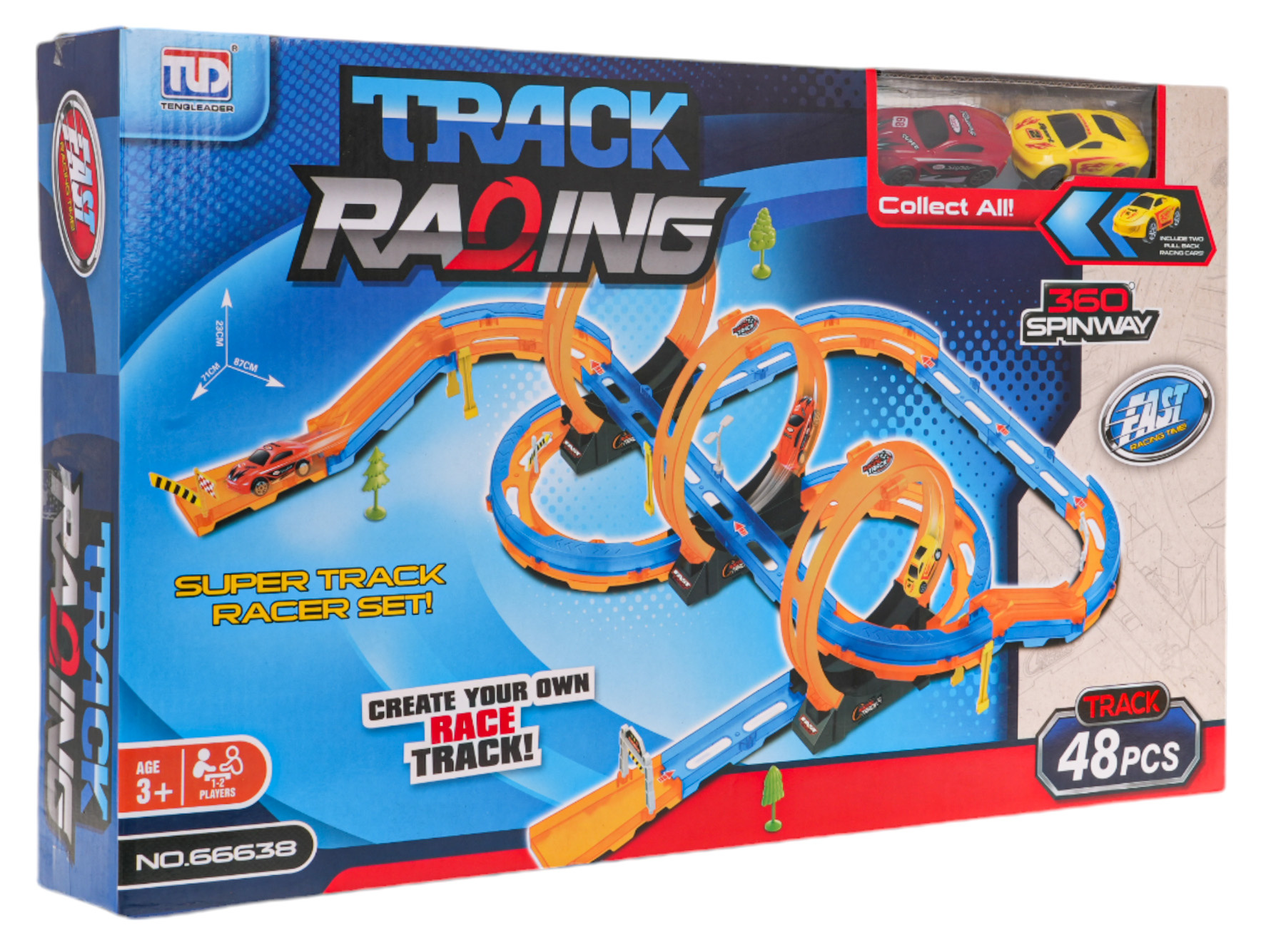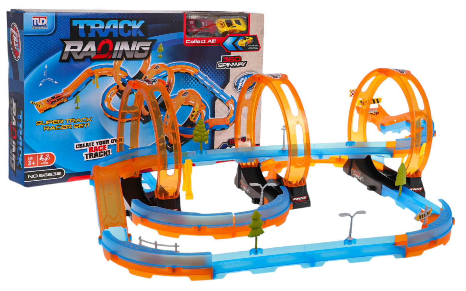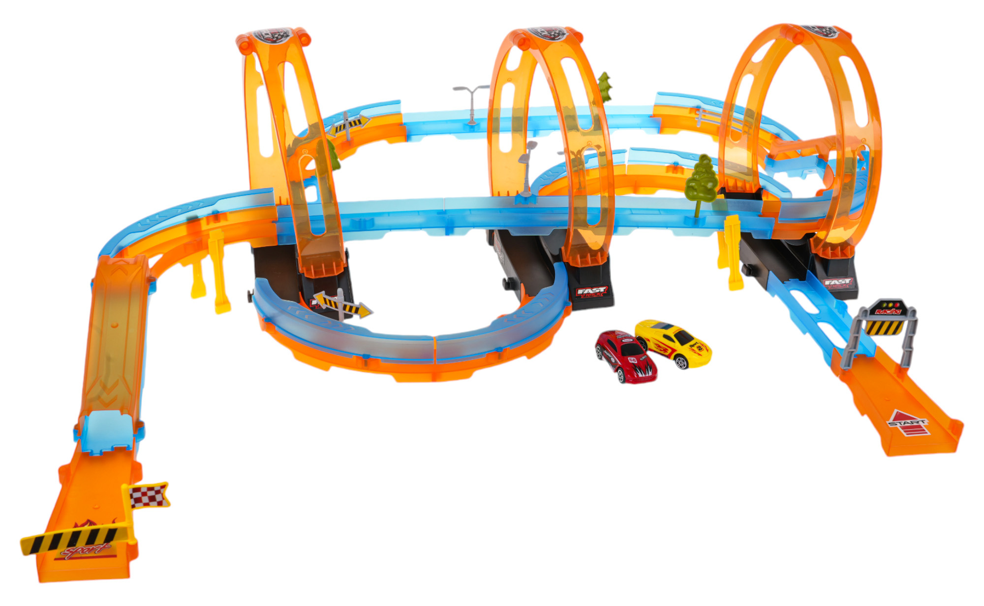 Velká, extrémní závodní dráha s ostrými zatáčkami, smyčkami a dvěma rychlými autíčky v sadě, je nabídkou pro děti od 3 let. Sada se skládá ze 48 prvků pro vlastní montáž. Na trati se nacházejí rovné úseky, ostré zatáčky s bariérami zabraňujícími vypadnutí vozidla z trasy, a také tři smyčky o 360 stupňů. Vozidla mají pohon pull back.