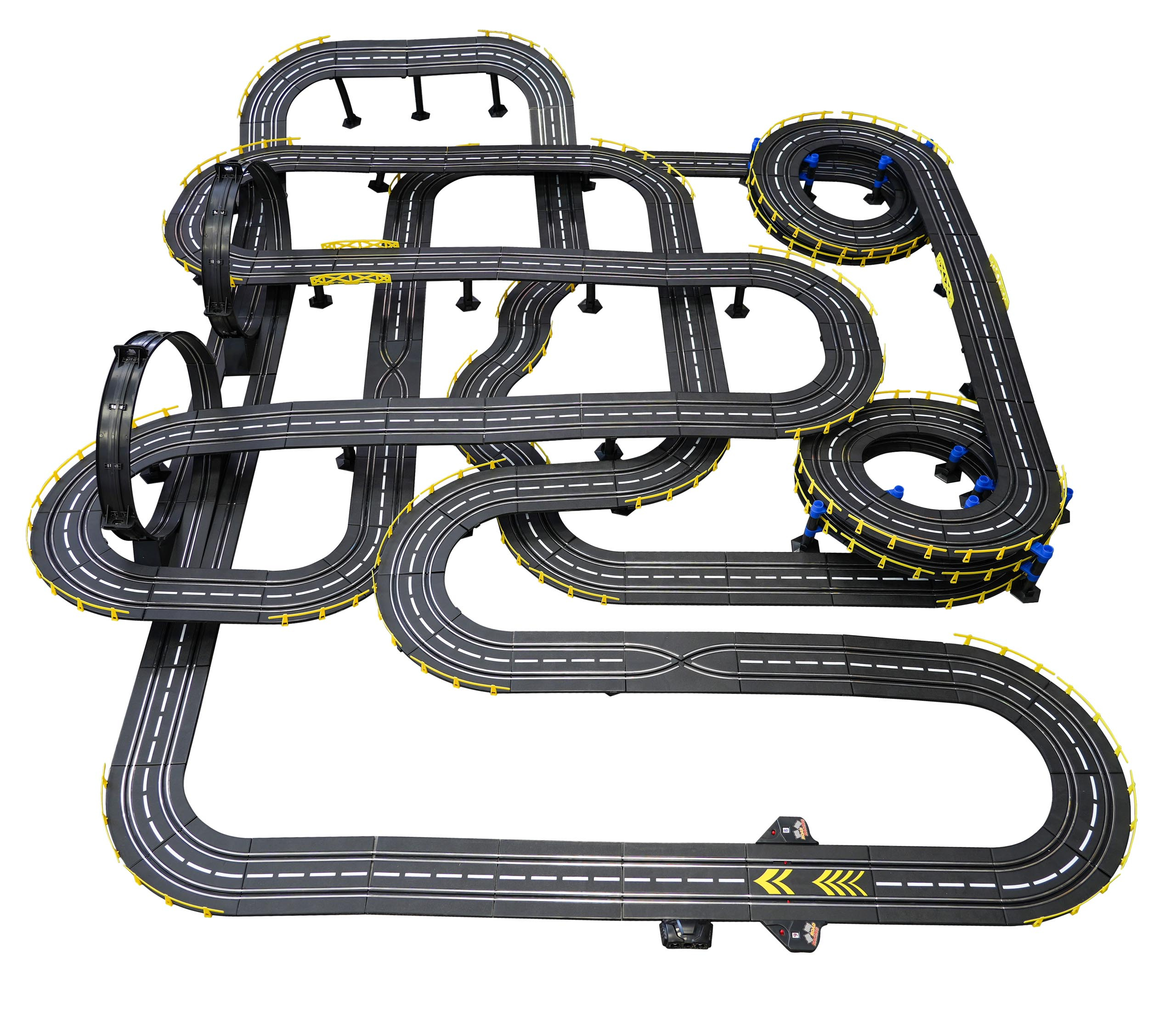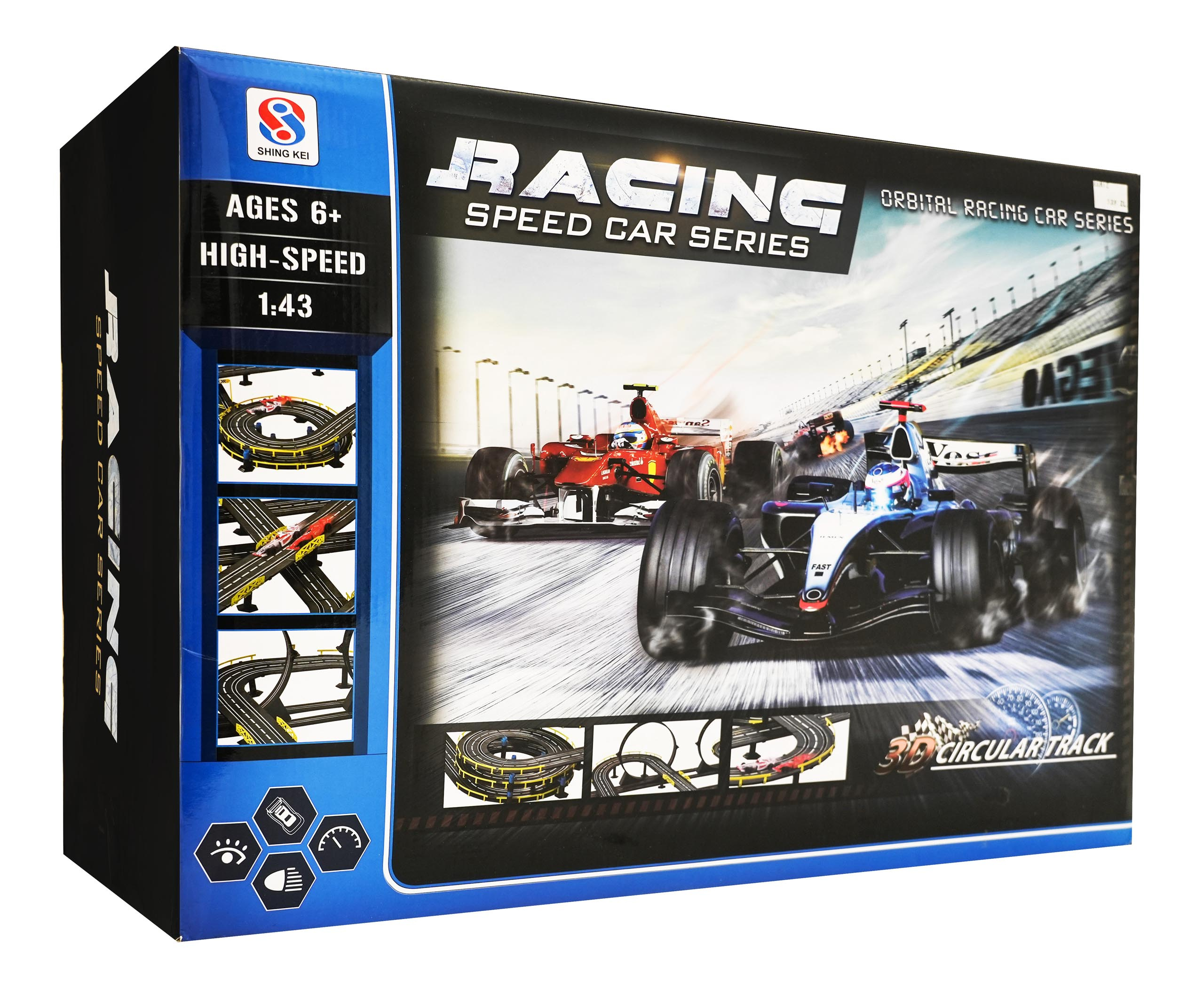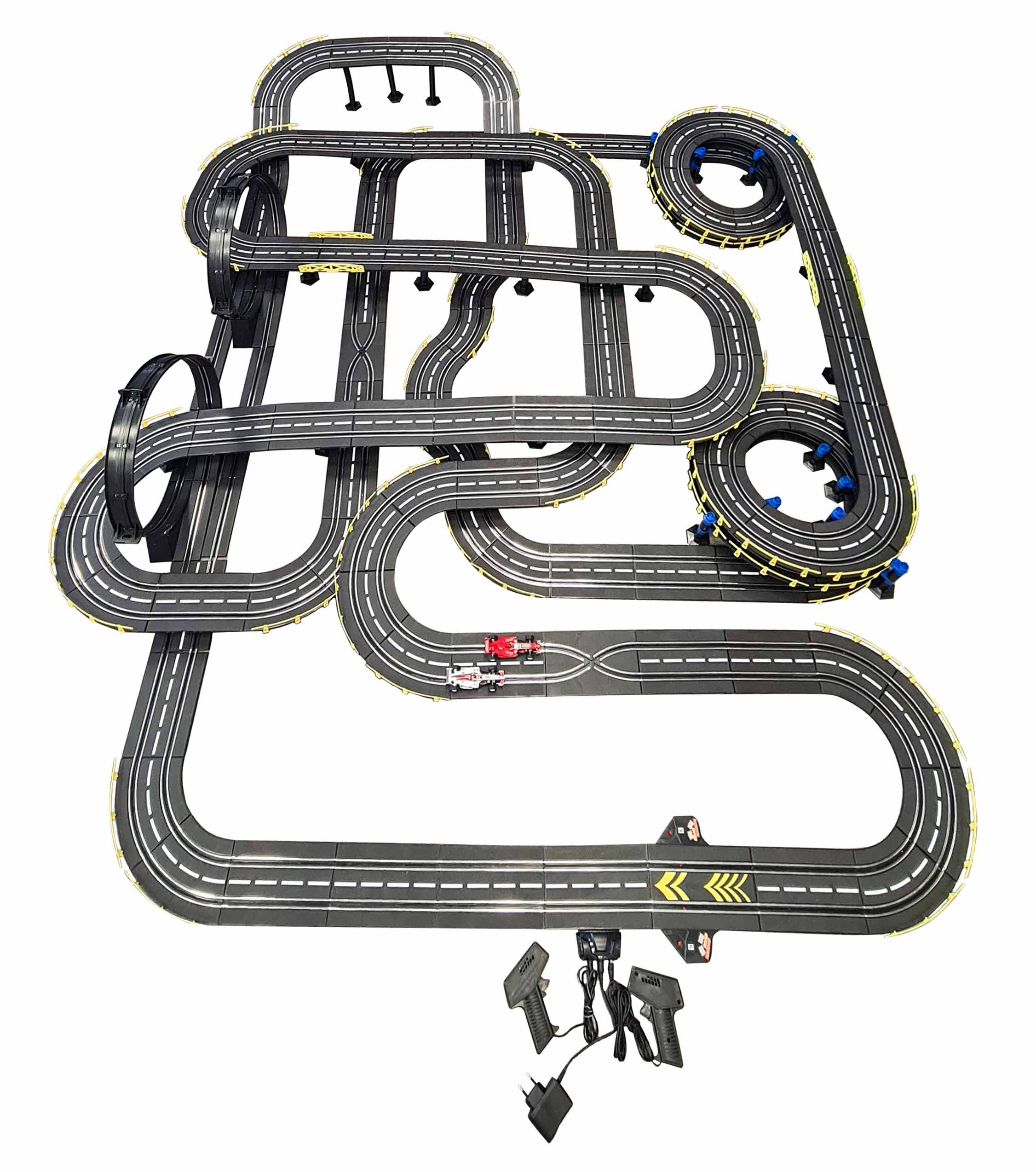 Obří závodní dráha s ostrými zatáčkami, smyčkami a autíčky na dálkové ovládání, vyrobená v měřítku 1:43, je určena pro děti od 6 let. Na trati mohou jezdit dva vozy současně. Směr jízdy a rychlost se ovládají pomocí dálkového ovládání. Každé vozidlo se ovládá samostatným dálkovým ovladačem. Dráha byla vyrobena z nejkvalitnějších materiálů, což zaručuje její odolnost a robustnost. Dráha obsahuje rovné úseky, ostré zatáčky se zábranami proti vypadnutí vozidla z dráhy a dvě 360stupňové smyčky. Celková délka trati je až 2 800 cm.