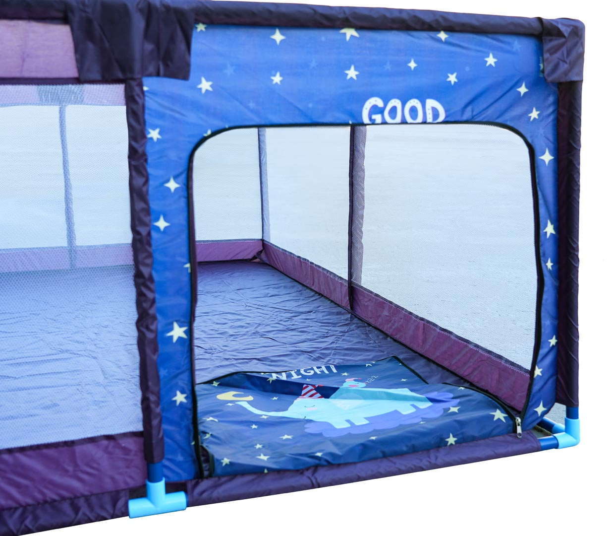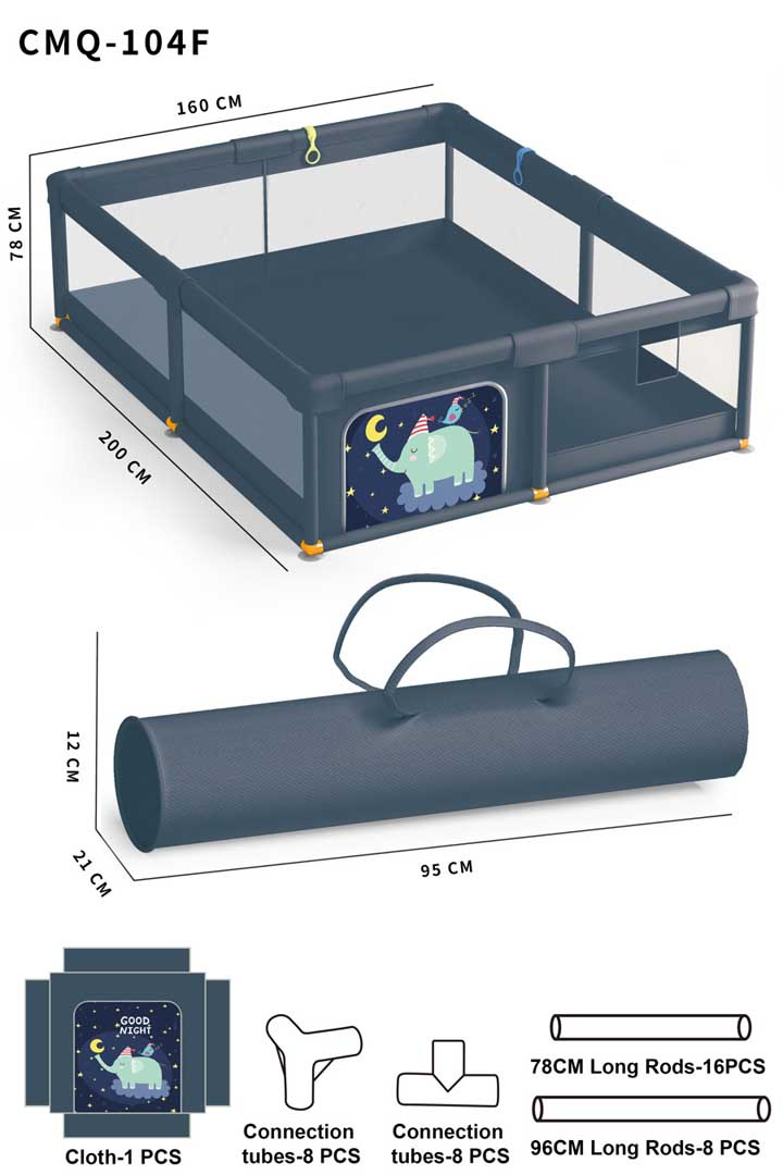 Měkká, obdélníková ohrádka pro děti od prvních dnů života. Ohrádka je lehká, díky čemuž ji lze rychle přemístit na vybrané místo. Vhodné pro použití uvnitř nebo venku. Materiál, ze kterého je vyroben, se velmi snadno čistí a dezinfikuje. Ohrádka má 4 stěny vyrobené ze síťoviny, díky čemuž můžeme snadno sledovat dítě. Stěna s veselým sloníkem má zip, díky čemuž může malý snadno vcházet a vycházet. Ohrádka je plně bezpečná pro dítě a stabilní.