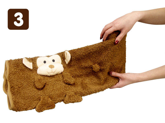 Batolata milují domácí mazlíčky, a proto jim můžete poskytnout takovou zábavu s těmito rozkošnými dekami. Ve třech jednoduchých krocích lze deku proměnit v plyšáka. Deka se sroluje do tvaru maskota, srolovaný konec se upevní poutkem a je tu plyšové zvířátko připravené k pomazlení.