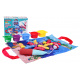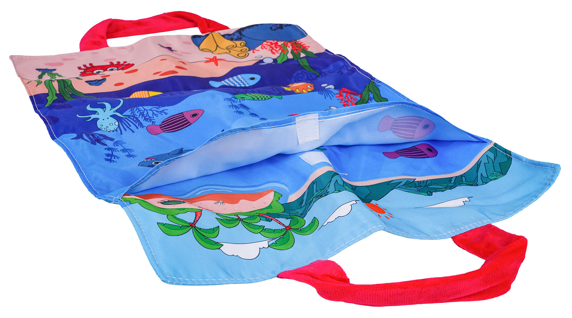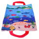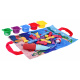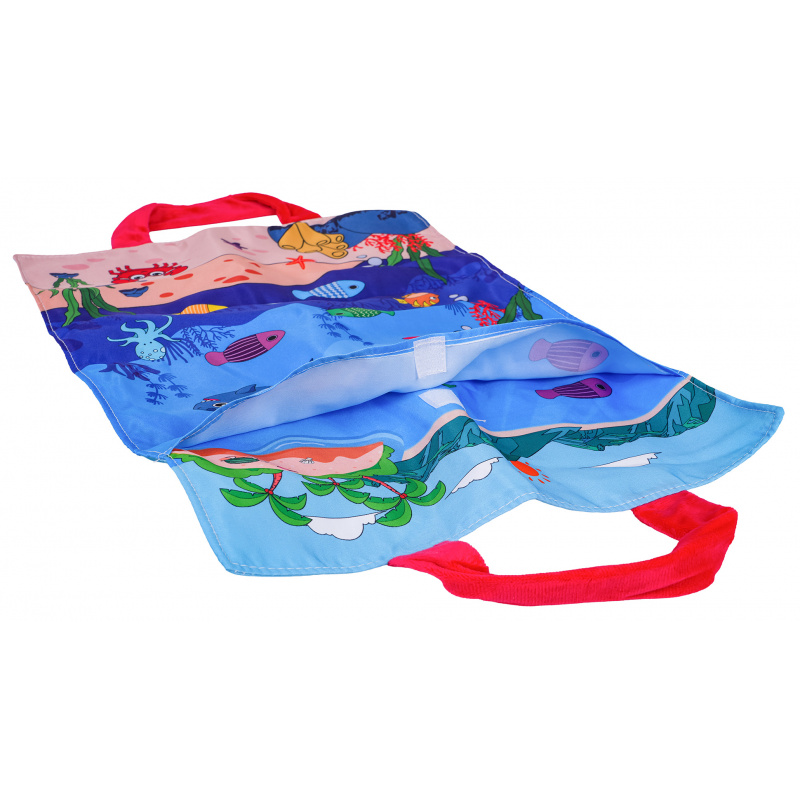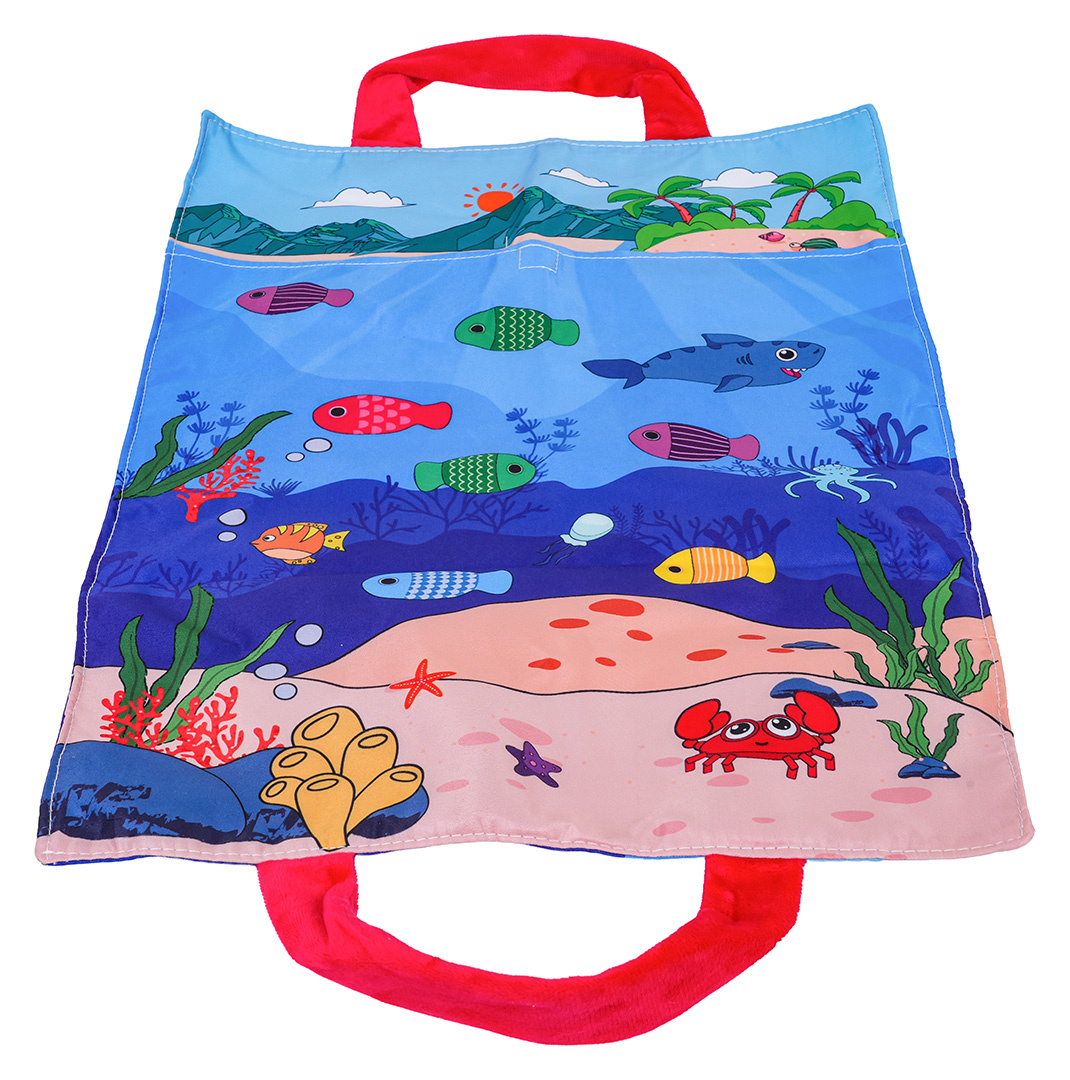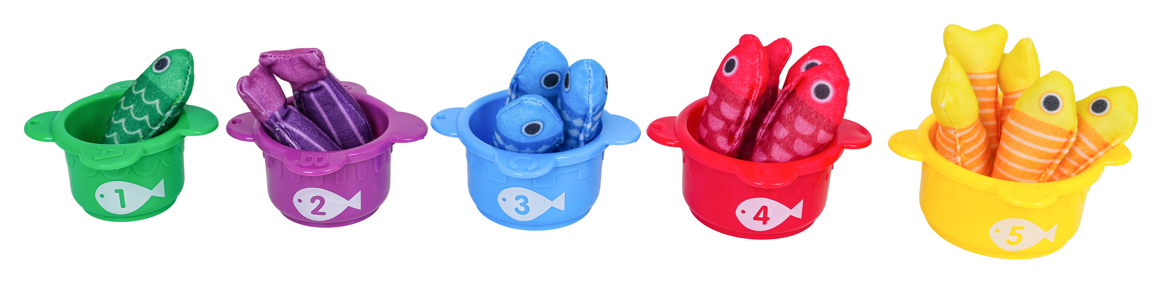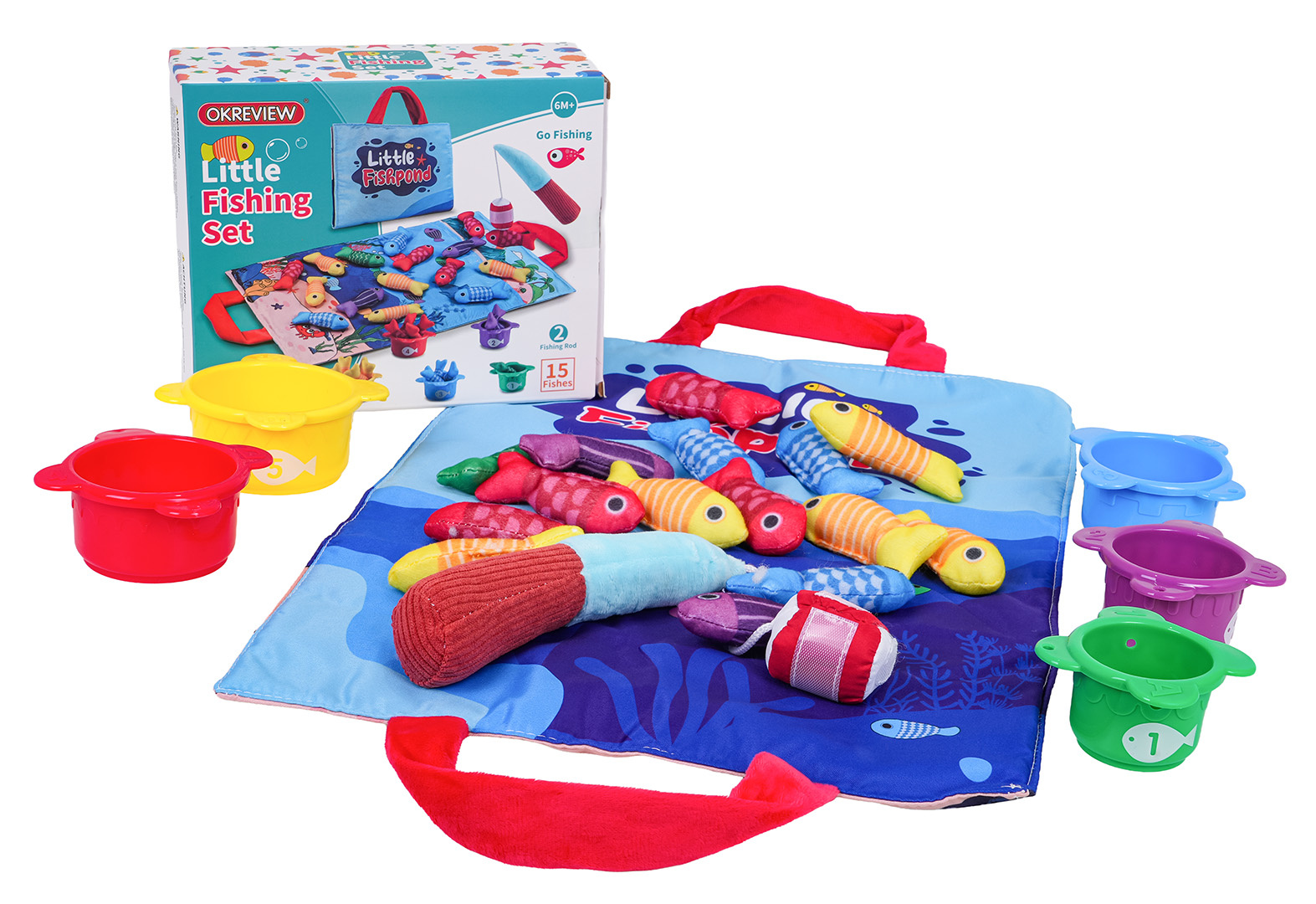 Měkká senzorická sada na lovení rybiček pro malé děti od šestého měsíce života. Sada je vyrobena z materiálů bezpečných pro děti v živých barvách, stimuluje dítě na mnoha úrovních. Živé barvy přitahují pozornost dítěte a povzbuzují ho k uchopení a hře. Sada obsahuje: látkovou podložku s obrázkem moře a mořských zvířátek, 15 měkkých barevných rybiček, 5 kelímků a prut na suchý zip. Rybičky jsou v 5 barevných variantách stejně jako hrnečky. Na kelímcích jsou čísla od 1 do 5. Miminko musí chytit rybičku a vložit ji do konkrétního kelímku, který odpovídá barvě rybičky. Počet rybiček v kelímku by měl odpovídat číslu na kelímku. Podložka má všité 2 rukojeti pro přenášení, můžete do ní vložit všechny prvky sady a vzít je všude s sebou. S touto sadou si malý cvičí koordinaci ruka-oko, stimuluje zrak, hmat, přesnost. Poznává tvary, barvy, učí se přiřazovat a počítat.