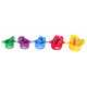 - 5 kelímků (červený, žlutý, modrý, zelený, fialový),