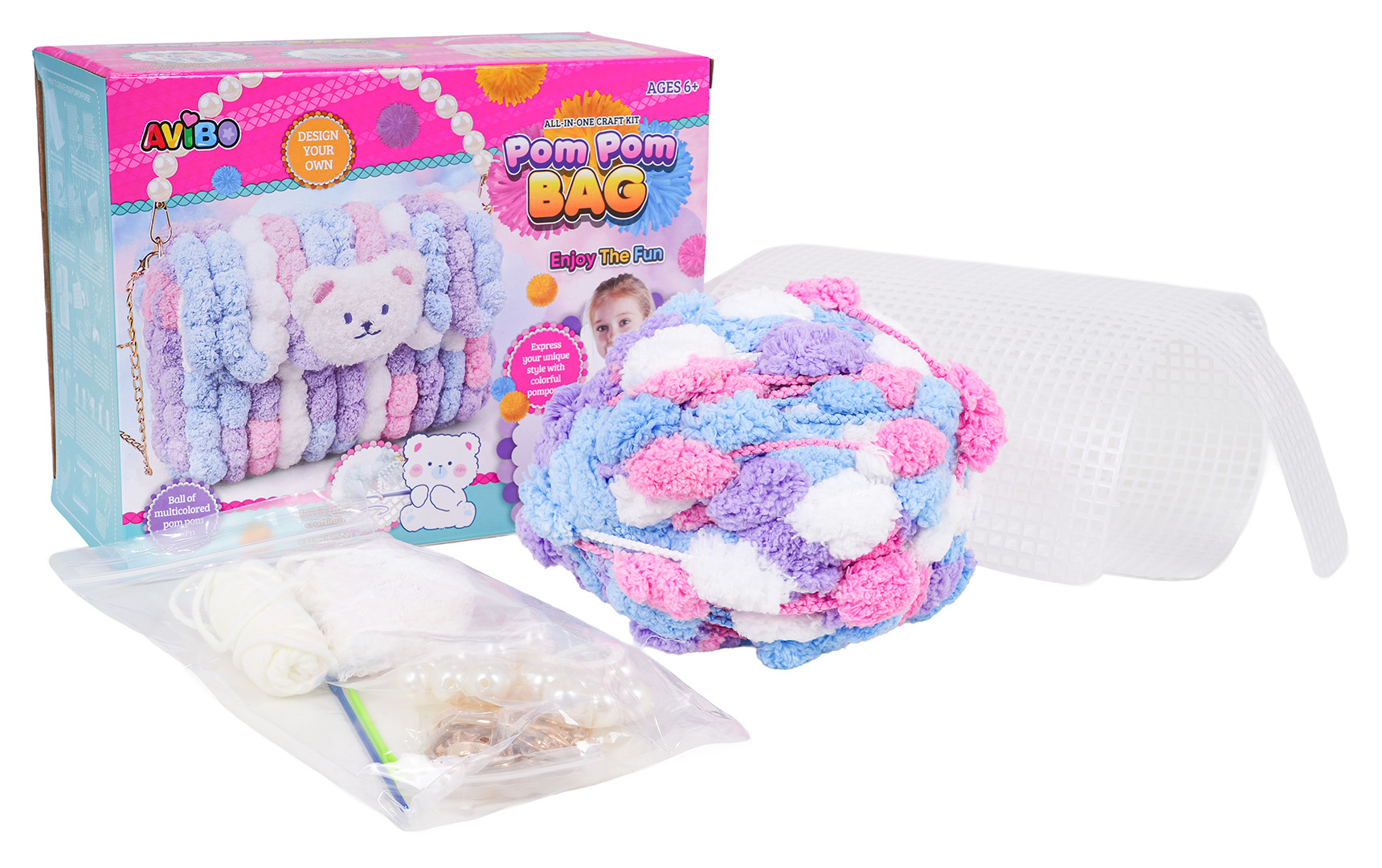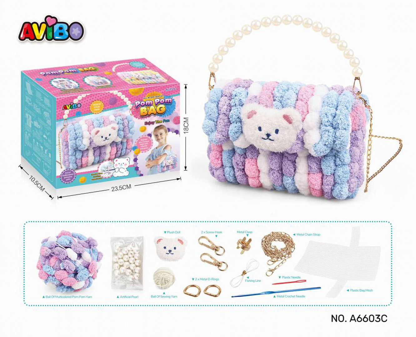Sada pro vlastní výrobu kabelky pro děti od šesti let. Sada obsahuje vše potřebné k vytvoření vlastního projektu kabelky. Máme měkkou šňůrku s bambulkami, zapínání, korálky, řetízek, přízi, provázek, plastovou formu na kabelky, která tvoří její kostru, jehlu a háček. Každý malý návrhář se stane specialistou na výrobu kabelek.