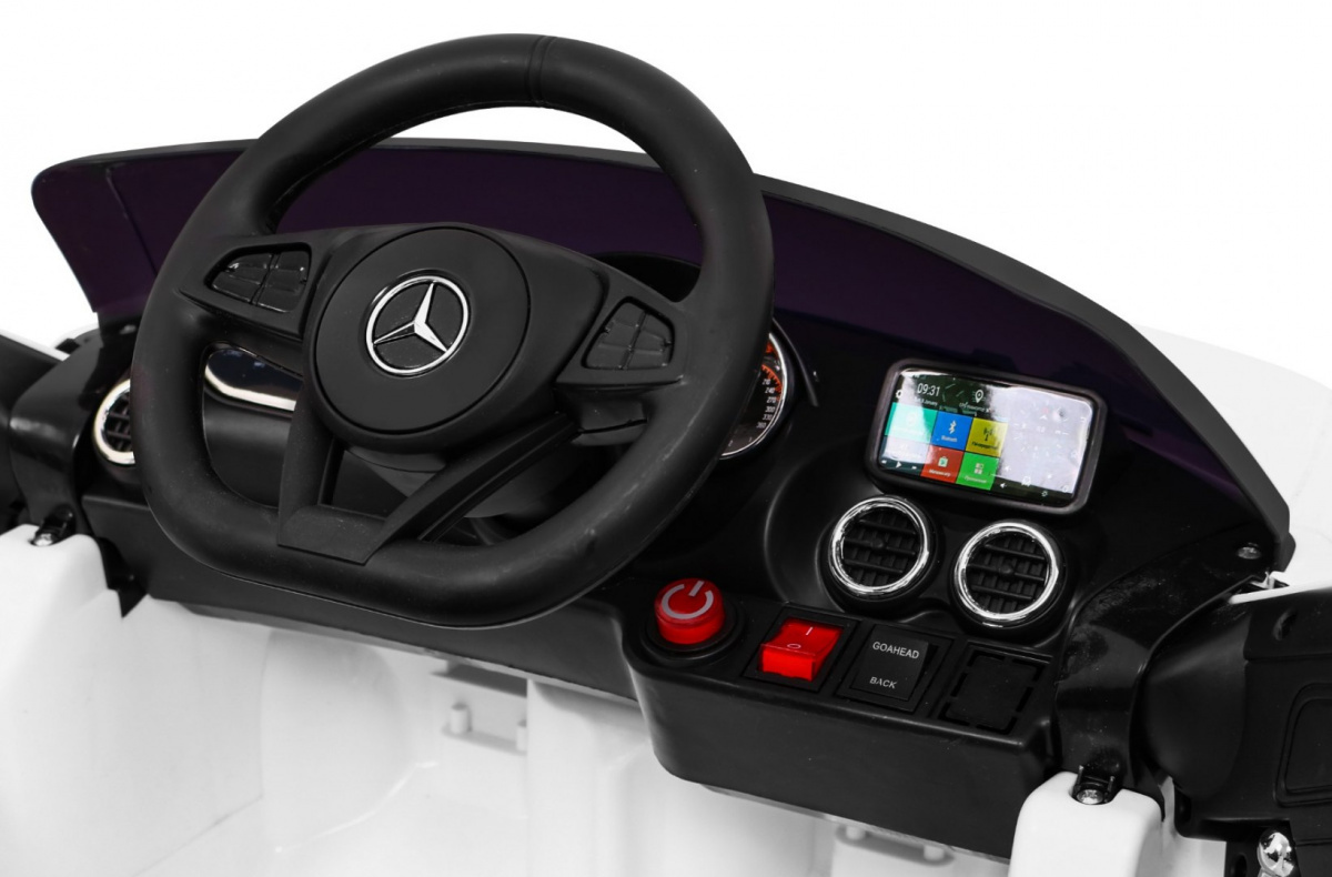 Mercedes Benz GT baterie pro děti Bílá + dálkové ovládání + pomalý start + MP3 LED