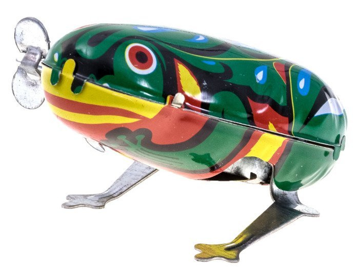Žabka na klíček je určena dětem. Hračka jako za starých časů, vyrobená z kovu v krásné zelené barvě a přišroubovaná klíčkem. Pohyb plechové žabky zajišťuje pružinový mechanismus přišroubovaný pomocí klíče.