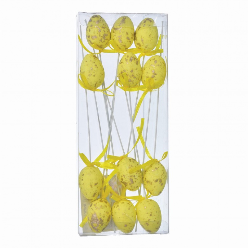 Metalická polystyrenová vajíčka na špejli 12 ks