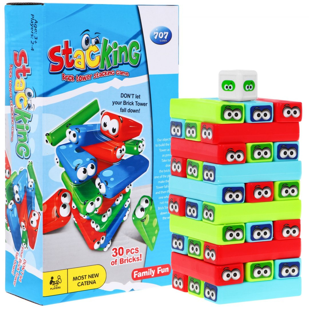 - hoďte kostkou a vyjměte z věže barvu kostky, kterou jste si vylosovali, a umístěte ji na vrchol věže,