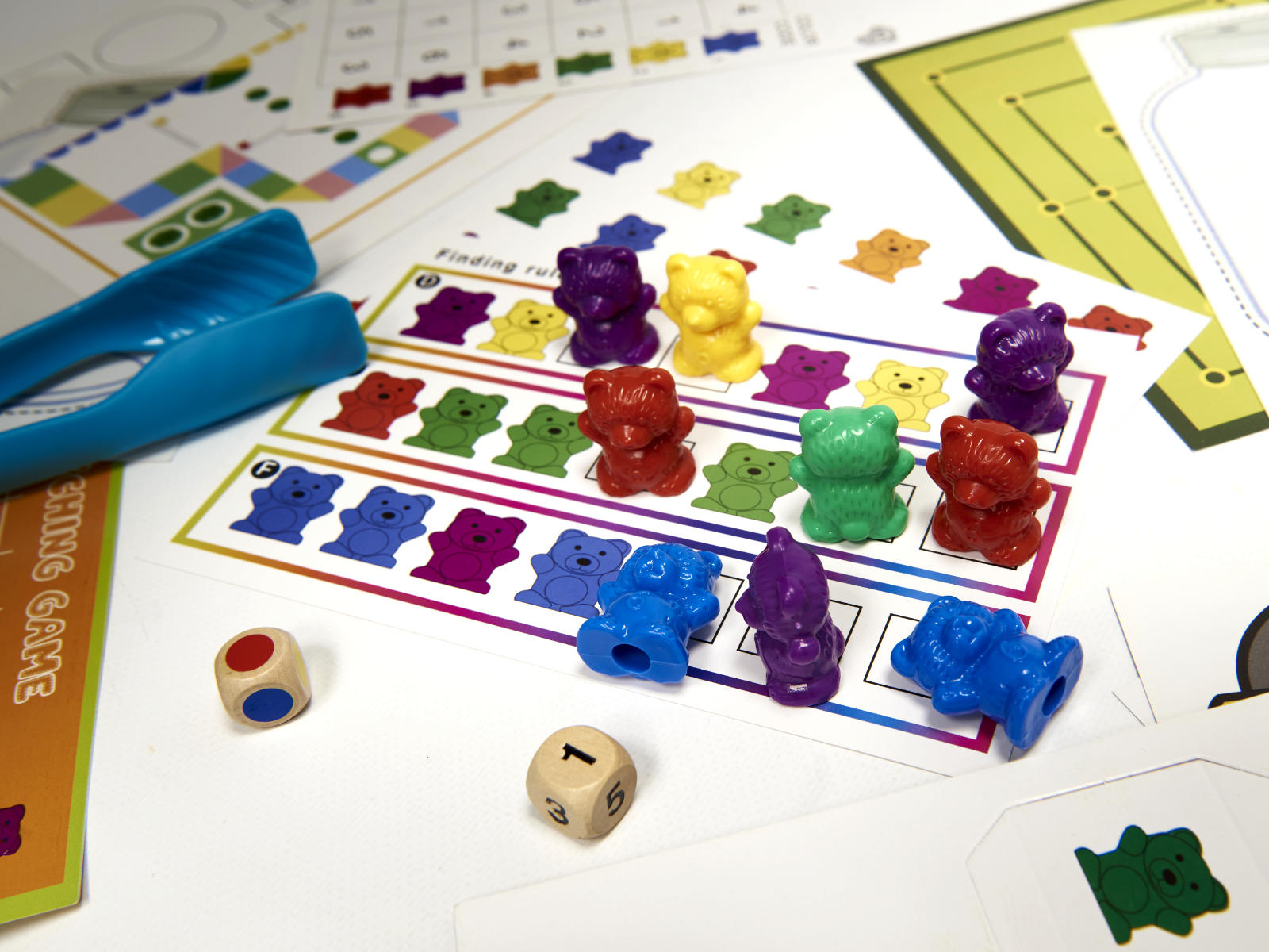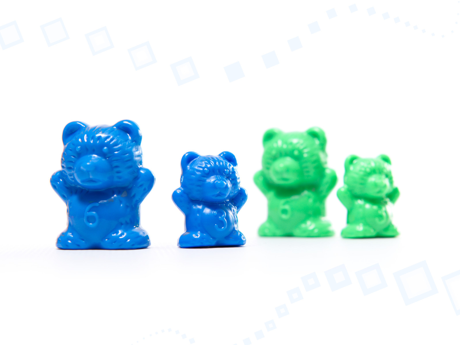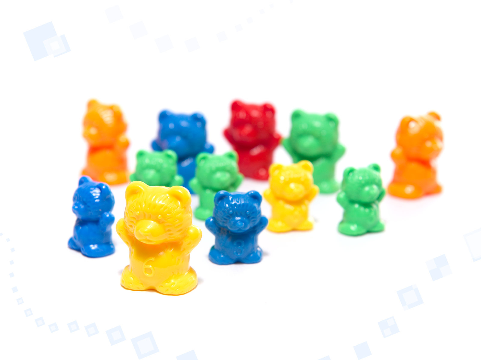 Sada obsahuje 60 sčítacích medvídků v 6 barvách a dvou velikostech. Sada rozvíjí rozeznávání barev a počtů.