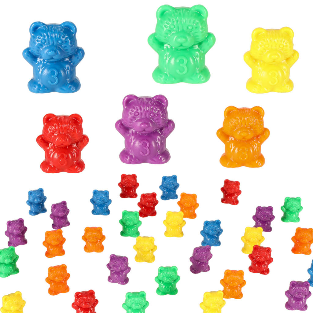 Sada obsahuje 36 sčítacích medvídků v 6 barvách. Sada rozvíjí rozeznávání barev a počtů.