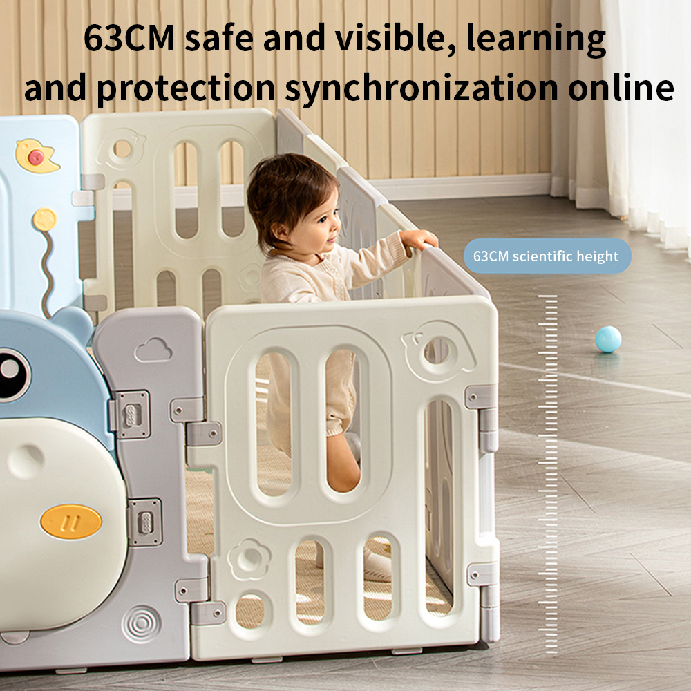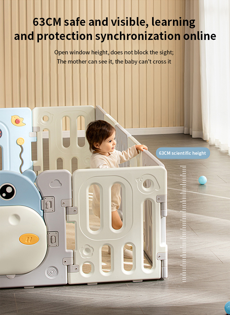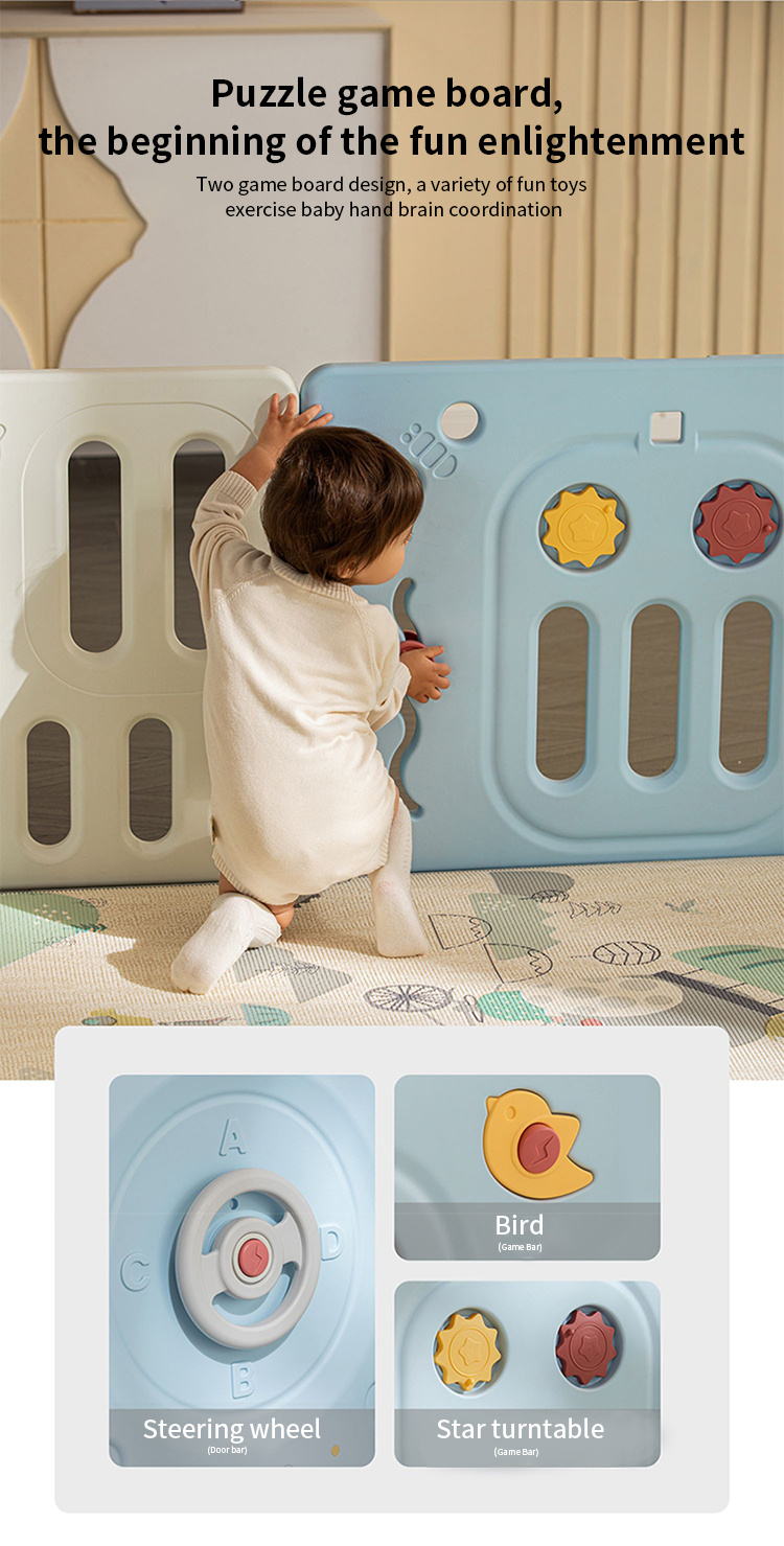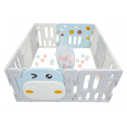 Velká, praktická, skládací modulární ohrádka pro dítě od 6. měsíce života. Z ohrádky můžeme postavit libovolnou konstrukci podle vlastních představ, velmi snadno se skládá a rozkládá, je stabilní a má hladké hrany. Vnitřek ohrádky je vybaven manipulačními prvky, jako jsou posuvné kolečko, ozubená kola, pískátko nebo volant. Sada je vyrobena z odolných a netoxických materiálů, skládá se z 10 panelů. Panel dveří se blokuje zvenku, což znemožňuje otevření dveří dítětem. Protiskluzové nožky zabraňují posouvání ohrádky. V ohrádce bude mít vaše děťátko dostatek prostoru pro volný pohyb a zároveň bude v bezpečí. V sadě se také nachází koš na míčky a 40 míčků.