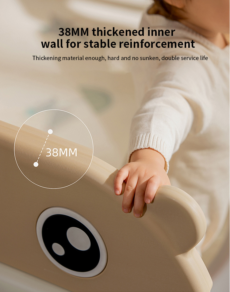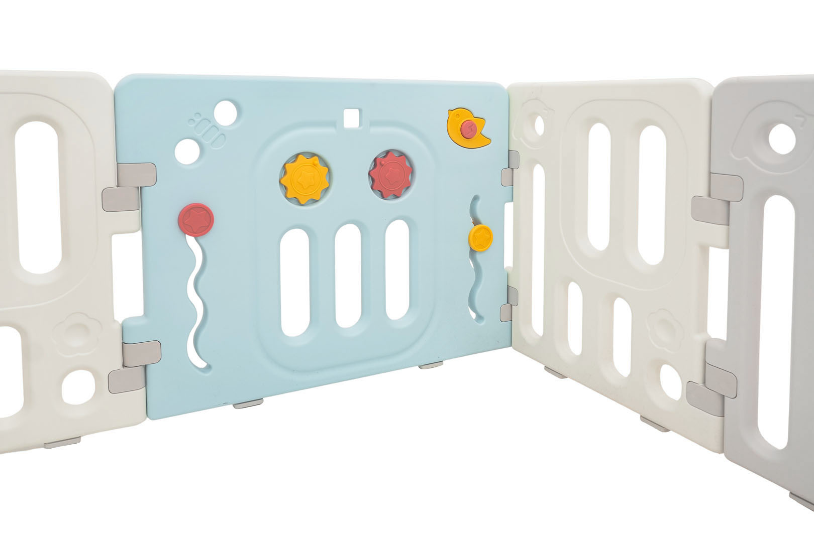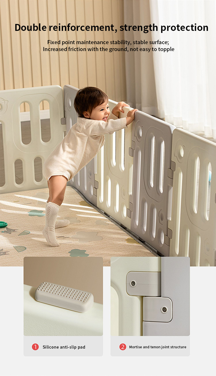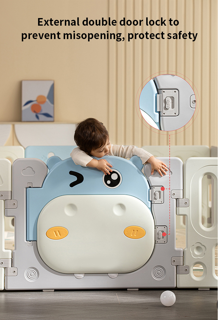 Velká, praktická, skládací modulární ohrádka pro dítě od 6. měsíce života. Z ohrádky můžeme postavit libovolnou konstrukci podle vlastních představ, velmi snadno se skládá a rozkládá, je stabilní a má hladké hrany. Vnitřek ohrádky je vybaven manipulačními prvky, jako jsou posuvné kolečko, ozubená kola, pískátko nebo volant. Sada je vyrobena z odolných a netoxických materiálů, skládá se z 10 panelů. Panel dveří se blokuje zvenku, což znemožňuje otevření dveří dítětem. Protiskluzové nožky zabraňují posouvání ohrádky. V ohrádce bude mít vaše děťátko dostatek prostoru pro volný pohyb a zároveň bude v bezpečí. V sadě se také nachází koš na míčky a 40 míčků.