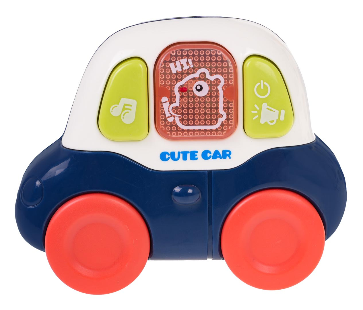 - světelné efekty: blikající tlačítko s medvídkem v autíčku vyjímatelném z panelu,