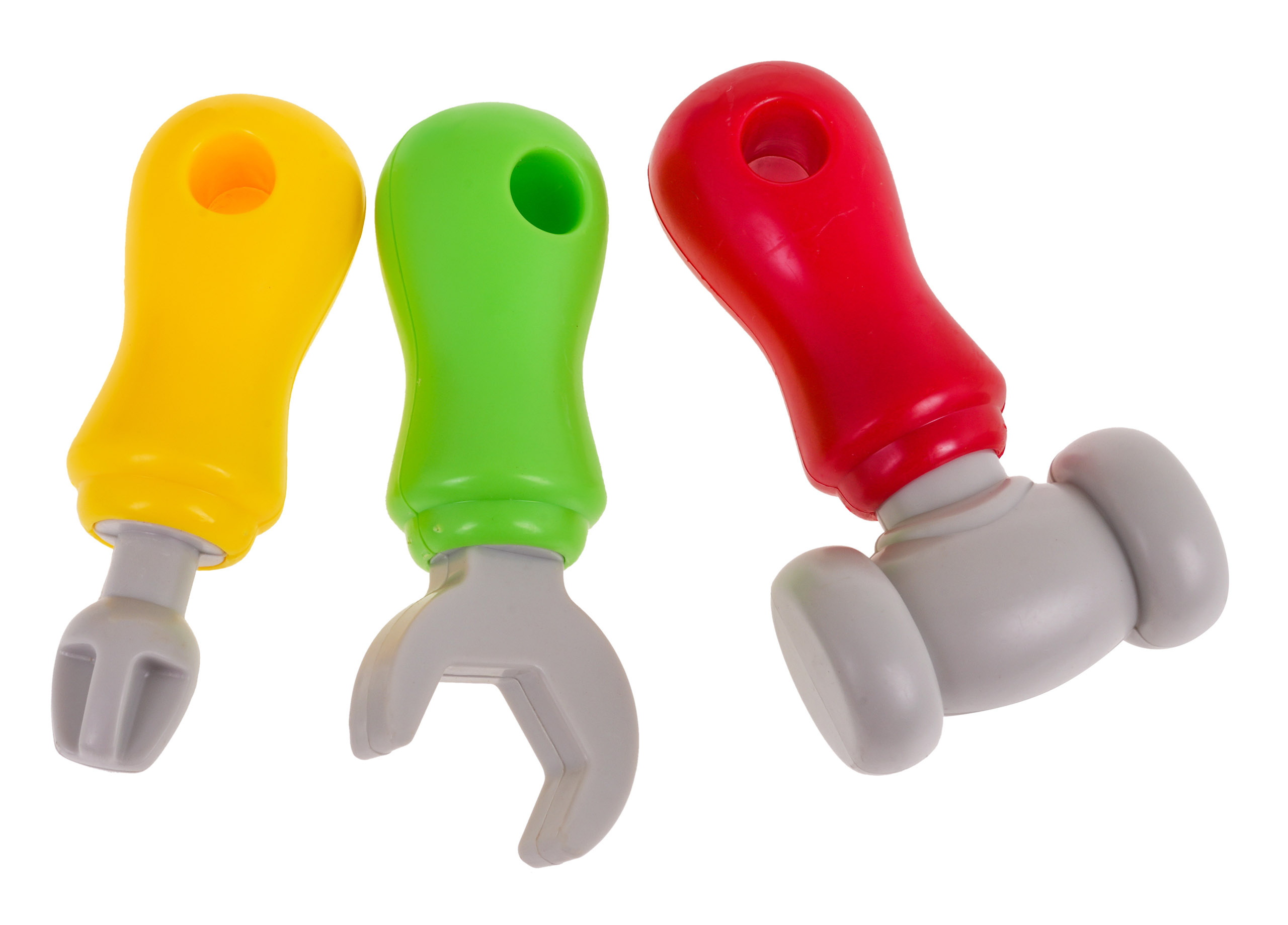 Multifunkční interaktivní hračka se zvukovou a světelnou funkcí je vhodná pro děti od 24 měsíců. Dílna pro kutily je vybavena řadou funkcí. K dispozici je rotační kotoučová pila a rázové kladivo. Každé nářadí je vybaveno praktickou rukojetí, s níž se spouští. Na desce pracovního stolu je připevněn svěrák, který umožní našemu malému dítěti naučit se reflexy při šroubování a odšroubování, doprovázené chrastivými zvuky. Součástí dílny budou hřebíky na zatloukání a šrouby na šroubování. K dalšímu vybavení patří nářadí: šroubovák, klíč a kladivo, vše v rozměrech dokonale vyhovujících malým dětským rukám. Dílna je také skvělým místem k procvičování rozpoznávání tvarů a přiřazování. Deska pracovního stolu je vybavena třídičem, který je vynikající pro rozvoj dětských dovedností. Všechny dílky, které zapadají do příslušných otvorů, najdete v praktické zásuvce ve spodní části hračky. Dílna je napájena 3 bateriemi AG13, které jsou součástí dodávky.