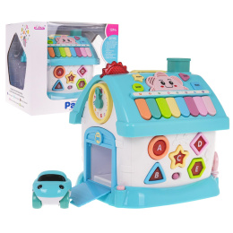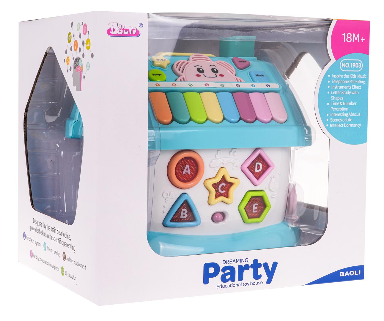 Interaktivní, vzdělávací domeček pro děti od 18 měsíců. Domek byl vyroben z plastu nejvyšší kvality, v živých barvách, které přitahují pozornost dítěte a povzbuzují k vzdělávací hře. Domek má 4 stěny nabízející různé atrakce, růžovou stříšku a rukojeť pro přenášení. Hračka je napájena bateriemi typu 3 x AA 1,5 V (nejsou součástí balení). K sadě je také připojeno modré autíčko.