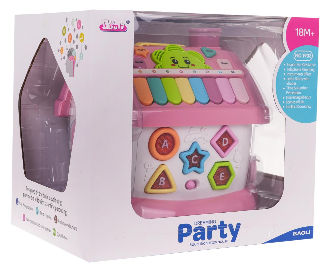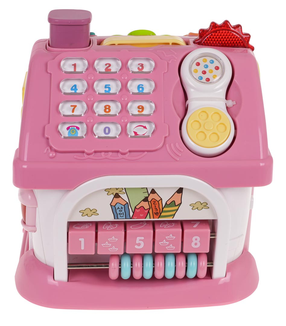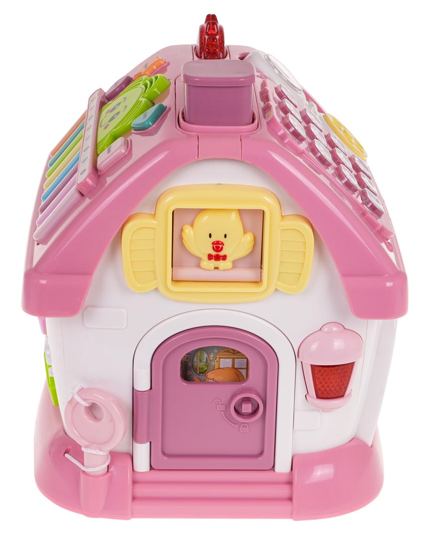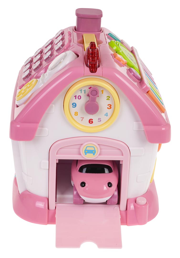 Interaktivní, vzdělávací domeček pro děti od 18 měsíců. Domek byl vyroben z plastu nejvyšší kvality, v živých barvách, které přitahují pozornost dítěte a povzbuzují k vzdělávací hře. Domek má 4 stěny nabízející různé atrakce, růžovou stříšku a rukojeť pro přenášení. Hračka je napájena bateriemi typu 3 x AA 1,5 V (nejsou součástí balení). K sadě je také přiloženo růžové autíčko.