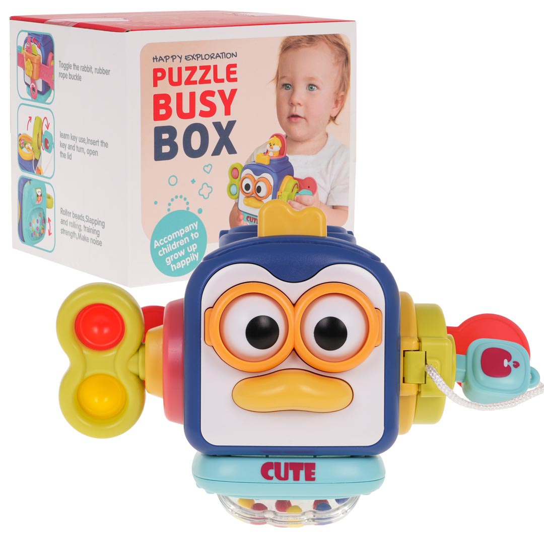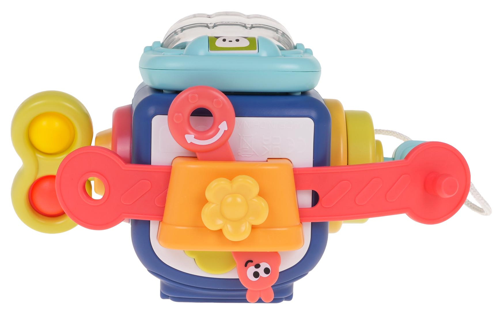 Multifunkční, vzdělávací hračka pro děti od 12 měsíců. Tato přenosná hračka kombinuje mnoho funkcí a nedovolí nudu, mnoho prvků je k objevování a mnoho dovedností k procvičení. Malý může tlačit, otáčet knoflíky, posouvat, přizpůsobovat, tahat různé prvky hračky, což stimuluje jeho koordinaci ruka-oko a cvičí malé ručičky. Hračka vyrobená z nejkvalitnějších materiálů v živých barvách.