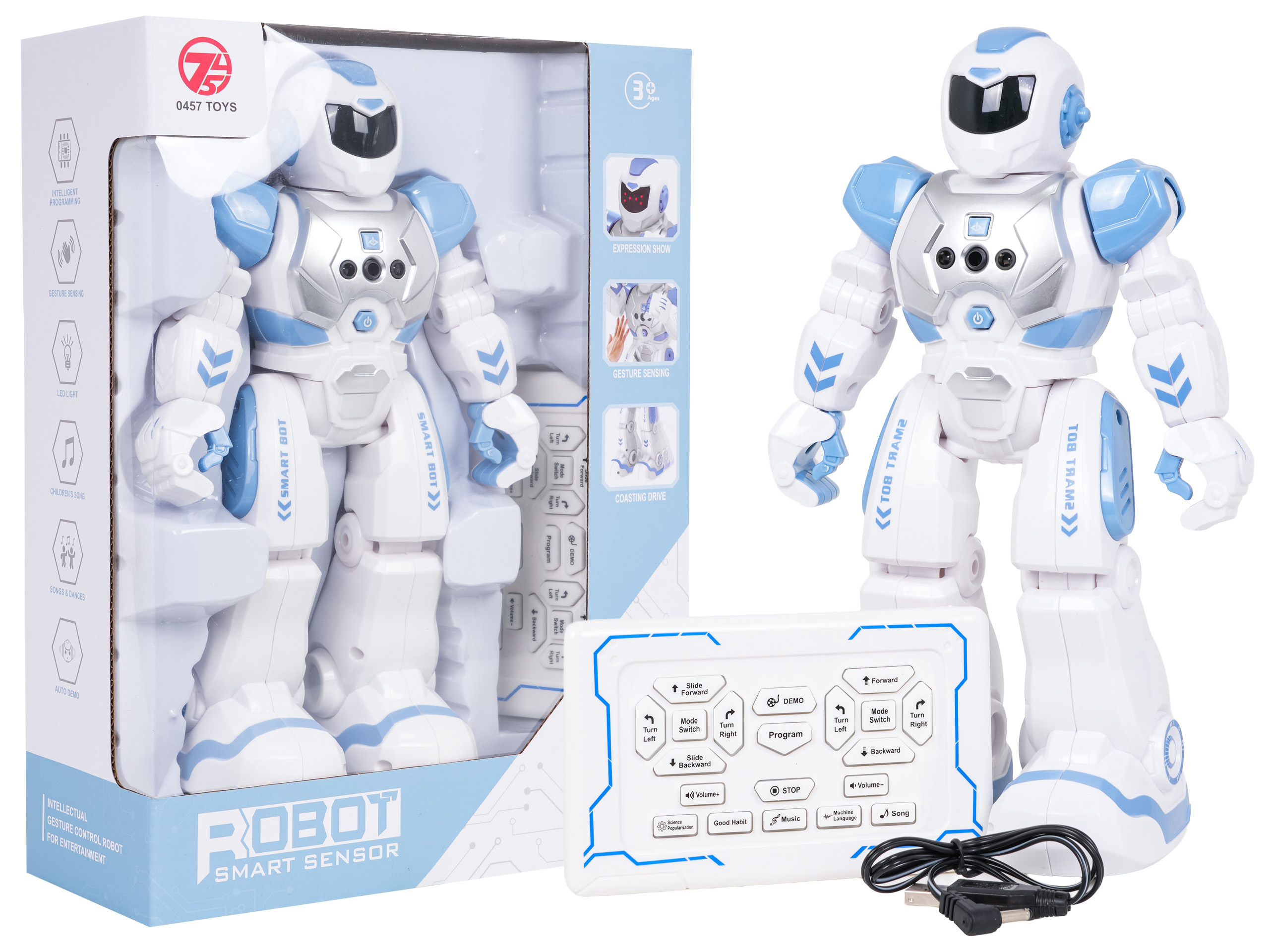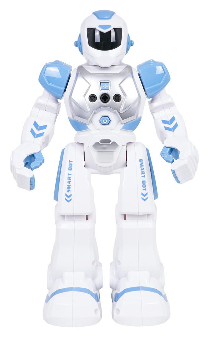 Interaktivní, multifunkční robot tanečník Smart-Bot pro děti od tří let. Robot byl vyroben z nejkvalitnějších materiálů, má podsvícené oči, umí tančit za doprovodu veselé melodie a písniček, otáčí se o 360 stupňů, pohybuje rameny, pohybuje se dopředu a dozadu, zatáčí doleva a doprava, reaguje také na senzorické podněty, mluví o dobrých návycích. Můžeme naprogramovat pohyby robota, je zde také demonstrační režim, ve kterém hračka ukazuje všechny své možnosti. Robot je napájen akumulátorem typu 3,7 V (v balení), ovladač bateriemi typu 2 x AA 1,5 V (nejsou součástí balení).