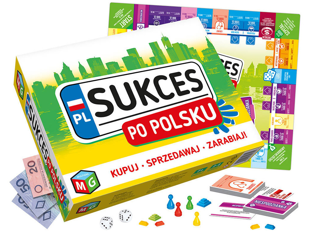 Sukces po Polsku je rodinná desková hra, se kterou si můžete vyzkoušet, zda máte obchodní talent. Vstupte do hry, vytvořte si strategii, nakupujte městské pozemky, investujte do nich a rozvíjejte zakoupené nemovitosti. Jakou strategii zvolíte? Budete hrát impulzivně, nebo opatrně a konzervativně? Vše proto, aby dominovali konkurenci, udrželi se na trhu a co nejrychleji rozmnožili svůj kapitál. Vývoj je na vás!