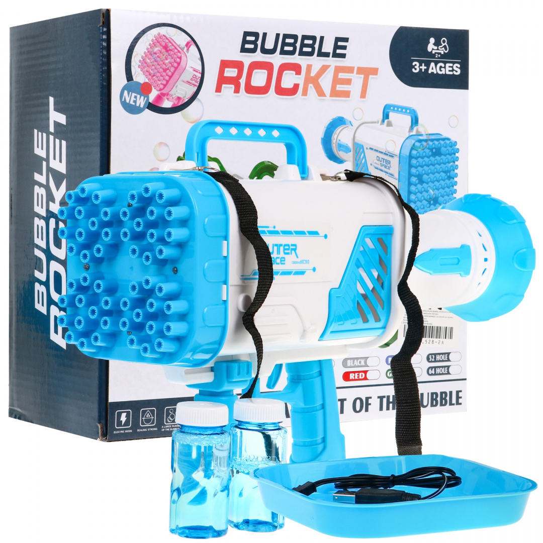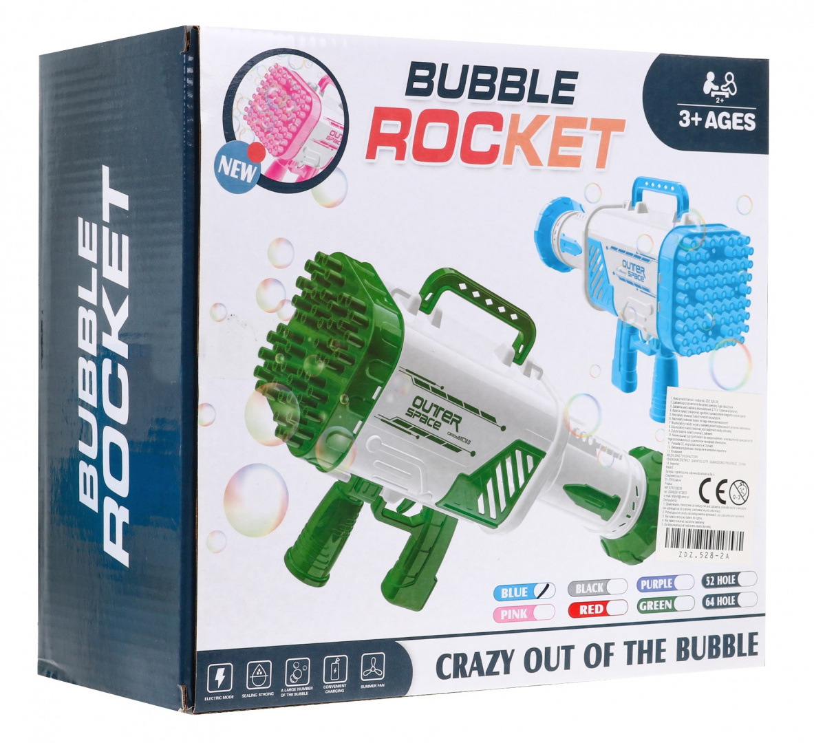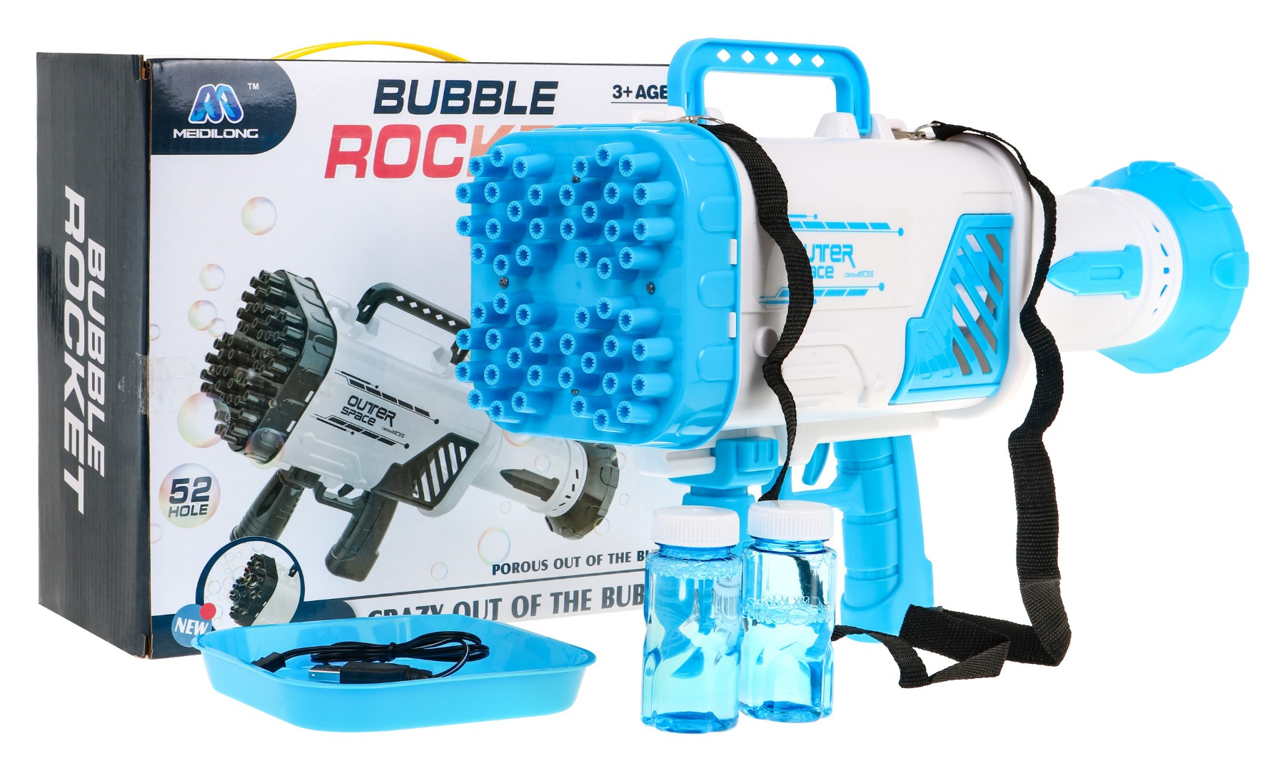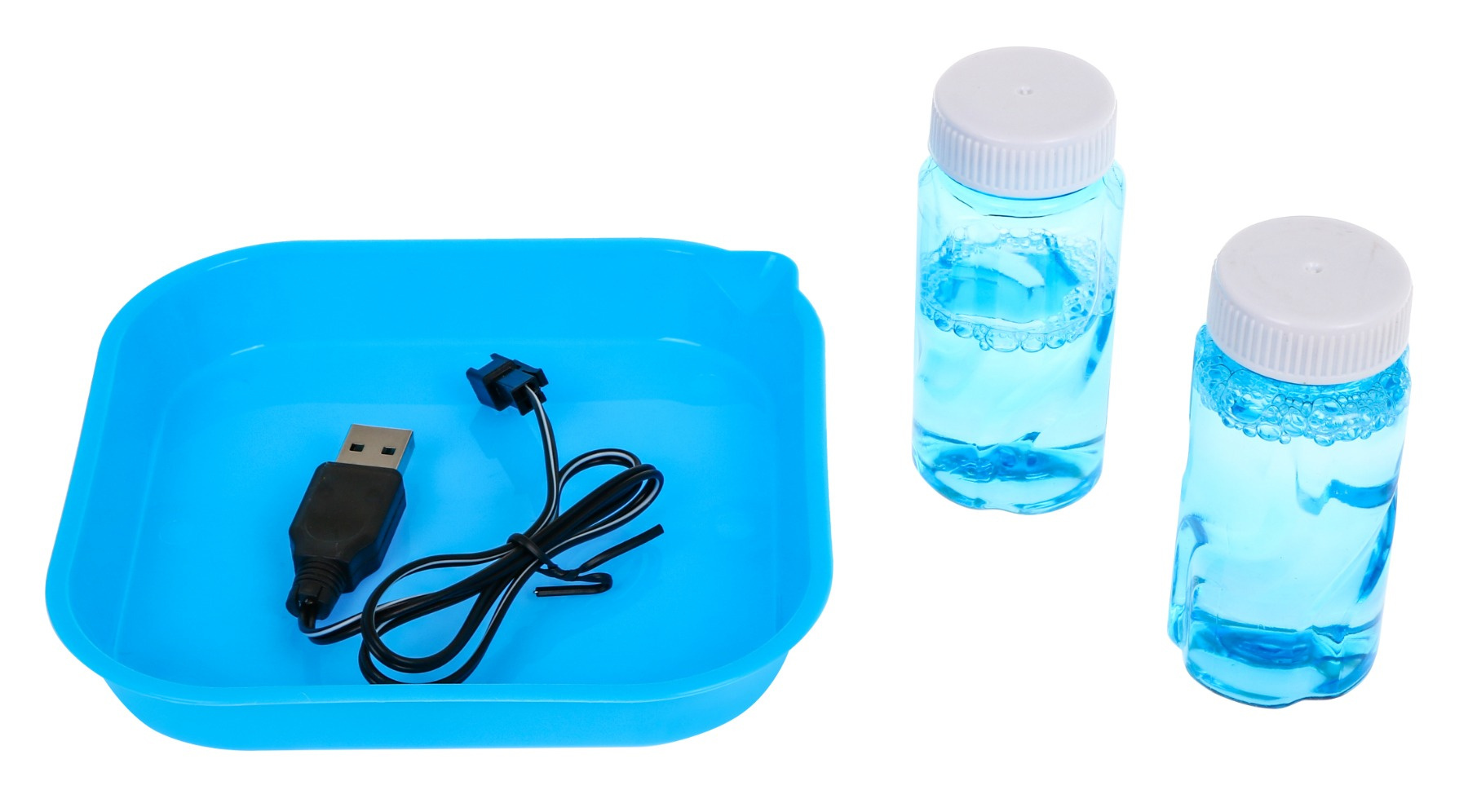 Tato hračka je určena pro děti starší 3 let. Hlava stroje má 52 otvorů, kterými bubliny vycházejí, a díky funkci osvětlení vypadají bubliny báječně. Bublinkovač lze použít také jako malý přenosný ventilátor. Hračka je napájena 3,7V baterií 2200 mAh (je součástí balení). Ovládání hračky je velmi jednoduché, stačí nalít trochu bublinkové tekutiny do přiložené základny a ponořit do ní hlavu stroje. Poté stiskněte spoušť přístroje, ze kterého začnou vystupovat krásně barevné bubliny.
