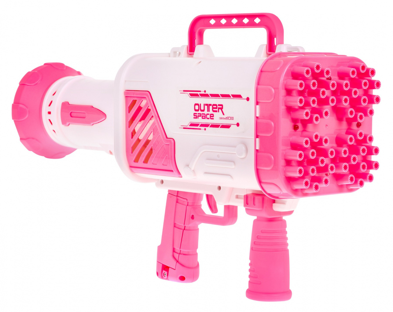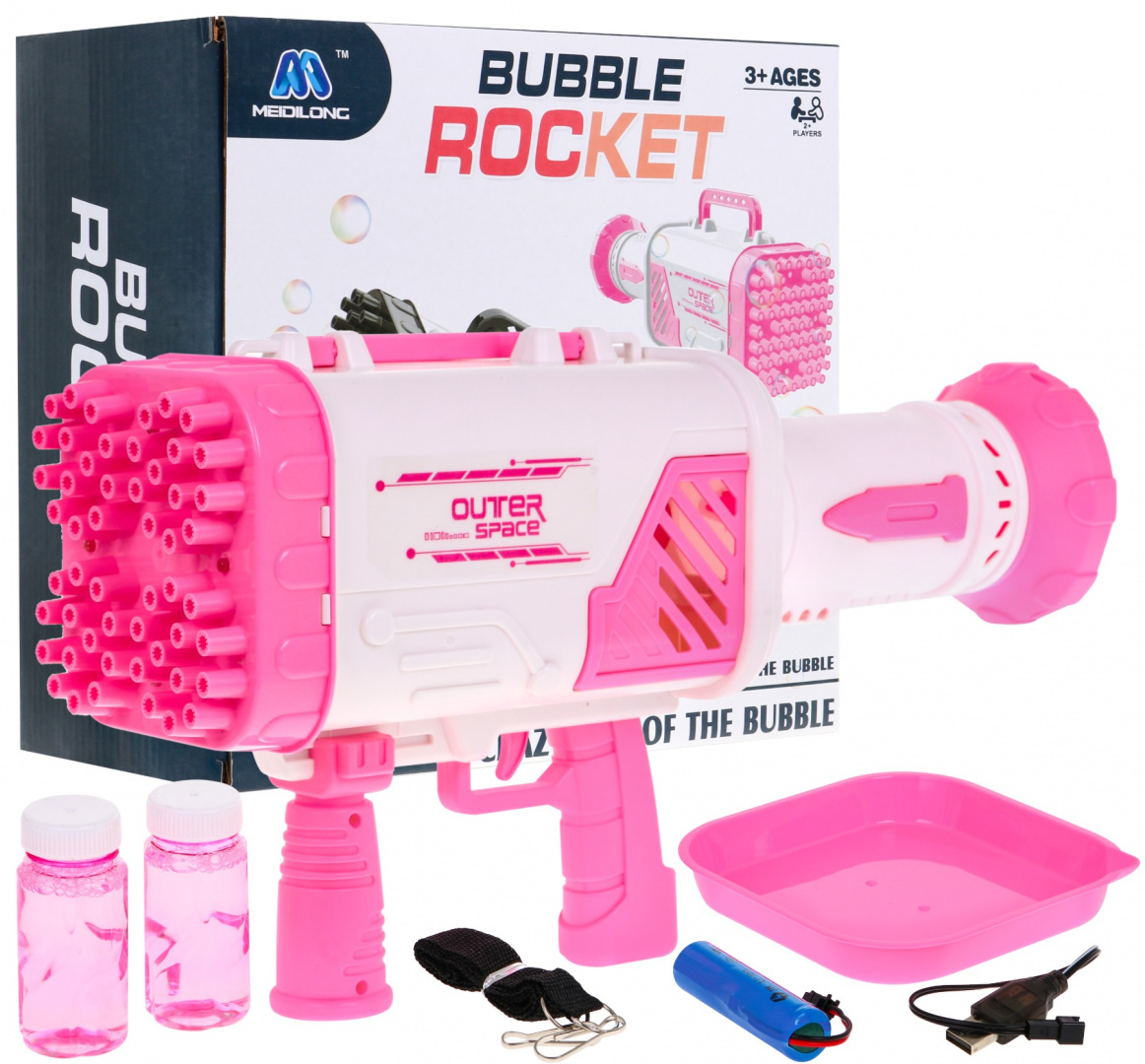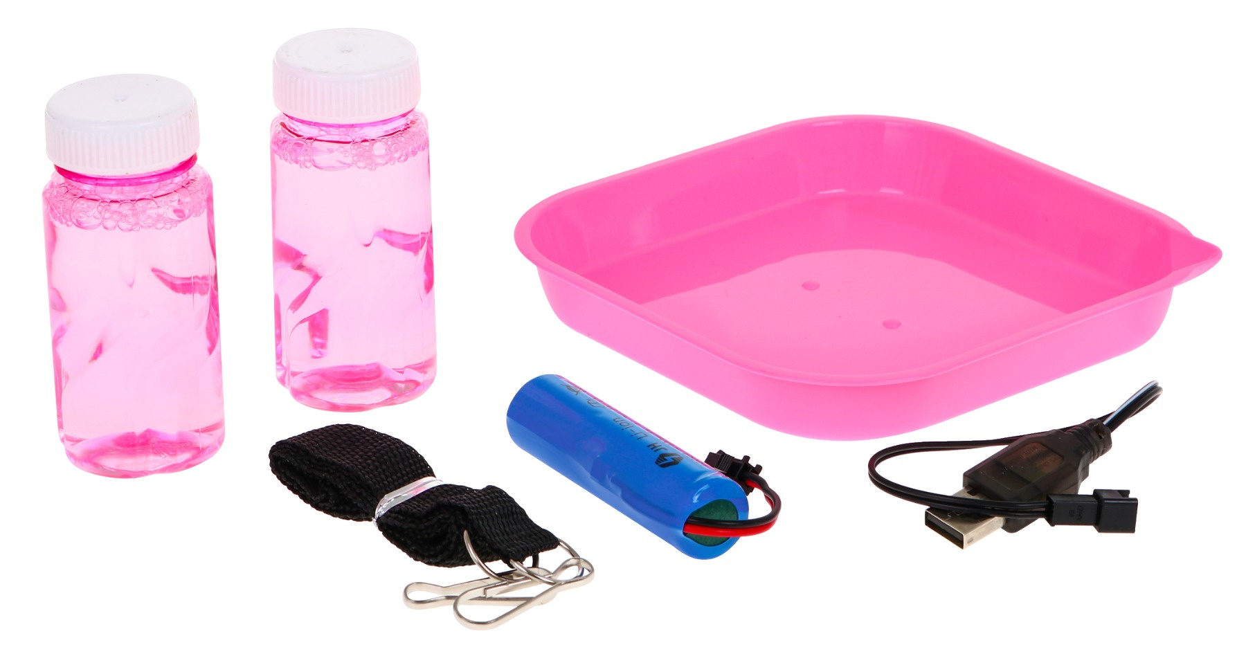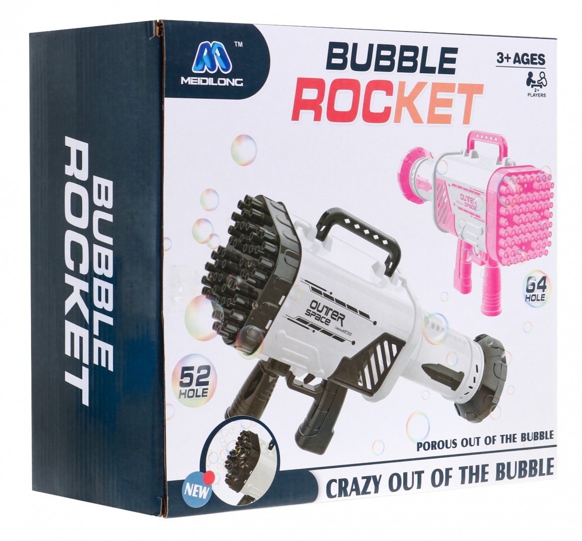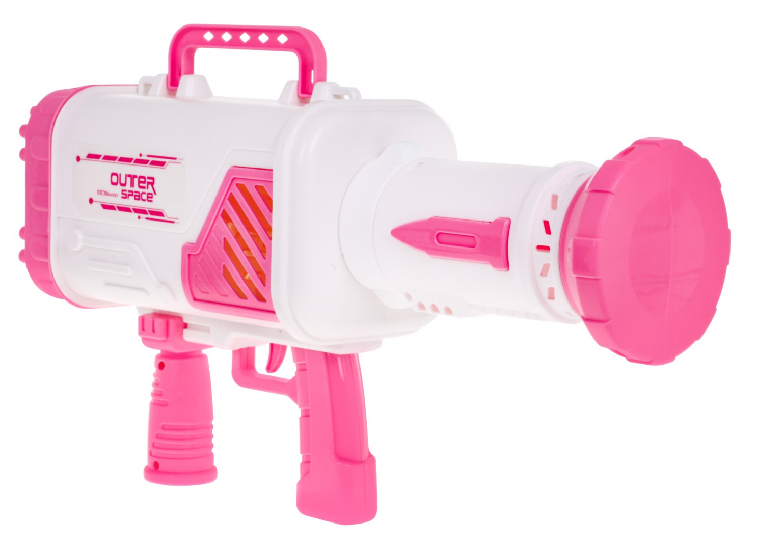 Tato hračka je určena pro děti starší 3 let. Hlava stroje má 52 otvorů, kterými bubliny vycházejí, a díky funkci osvětlení vypadají bubliny báječně. Bublinkovač lze použít také jako malý přenosný ventilátor. Hračka je napájena 3,7V baterií 2200 mAh (je součástí balení). Ovládání hračky je velmi jednoduché, stačí nalít trochu bublinkové tekutiny do přiložené základny a ponořit do ní hlavu stroje. Poté stiskněte spoušť přístroje, ze kterého začnou vystupovat krásně barevné bubliny.