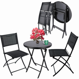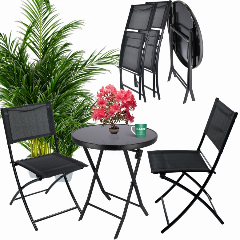 Výhodou této sady je, že židle a stůl lze složit a díky malým rozměrům lze nábytek mimo sezónu snadno uskladnit. Nábytek je vyroben z oceli, skla a odolné textilní tkaniny, která je odolná vůči nepříznivým povětrnostním podmínkám. Sada obsahuje 2 skládací židle a stůl Tato sada: kombinuje vynikající funkčnost s moderním designem. Jedná se o zahradní nábytek, který se snadno udržuje. Zajišťuje stabilitu a významně přispívá k pohodlí při sezení. Velmi snadno se čistí, což znamená, že s trochou času a peněz bude váš nábytek stále zářit jako nový.