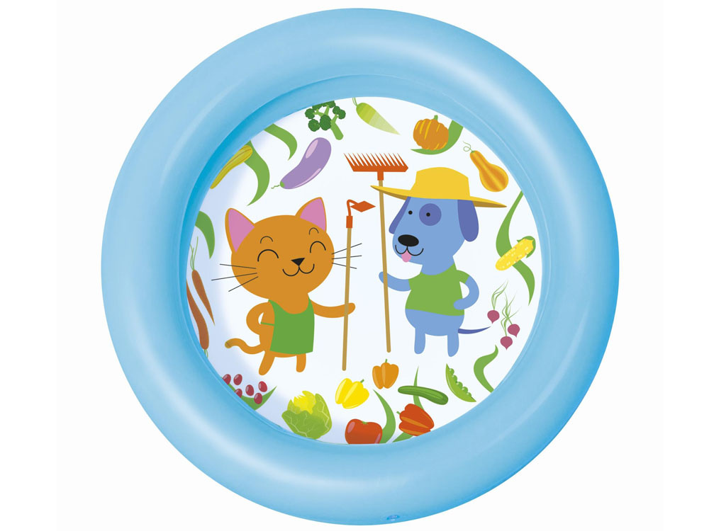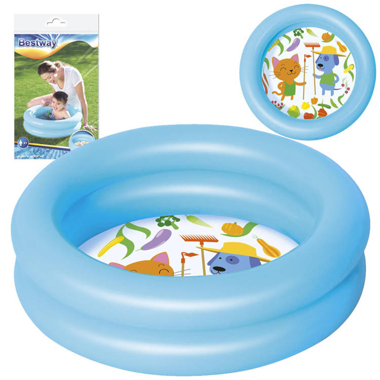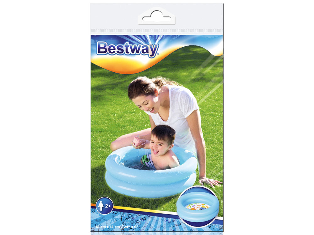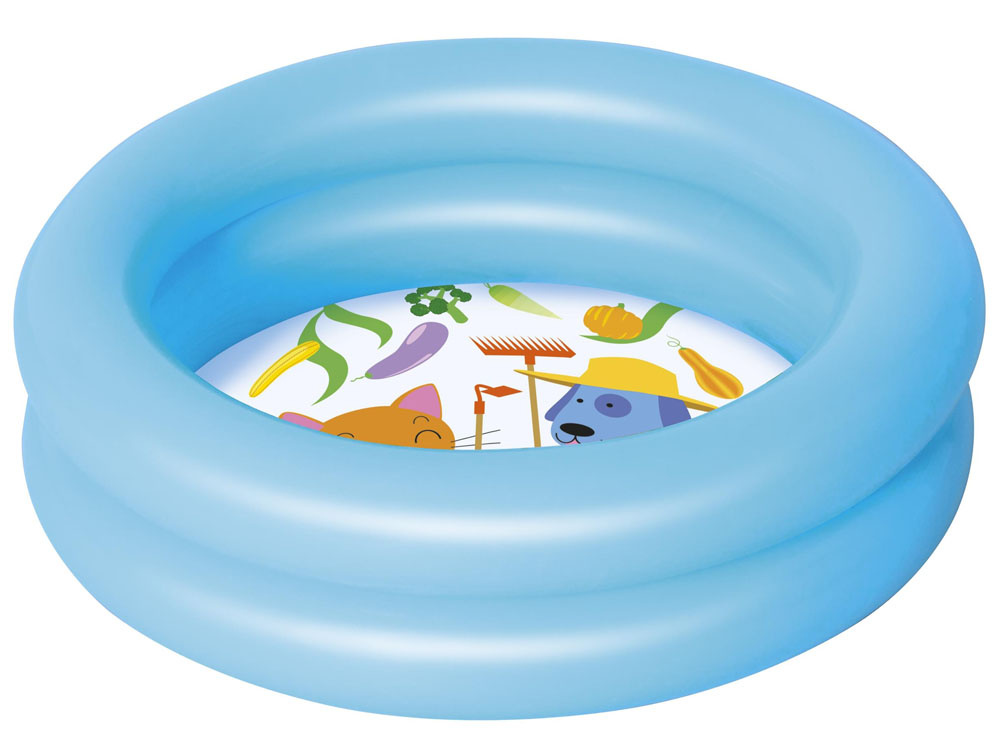 Modré kulaté brouzdaliště - nafukovací bazén o rozměrech 61 cm x 15 cm je výrobek určený pro batolata. Kolébka je vyrobena z odolného vinylového materiálu, má dvě vzduchové komory a bezpečnostní ventil, který zabraňuje úniku vzduchu. Skládá se ze 2 nafukovacích kruhů, z nichž každý je samostatně nafouknutý. Dno bazénu je potištěno veselými zvířátky, která zpříjemní každé koupání.Objem sprchové vaničky je 21 litrů s doporučenou mírou naplnění 75 %.Díky malým rozměrům a hmotnosti si ji můžete vzít kamkoli, na pláž, na trávu na zahradě nebo na dovolenou.
