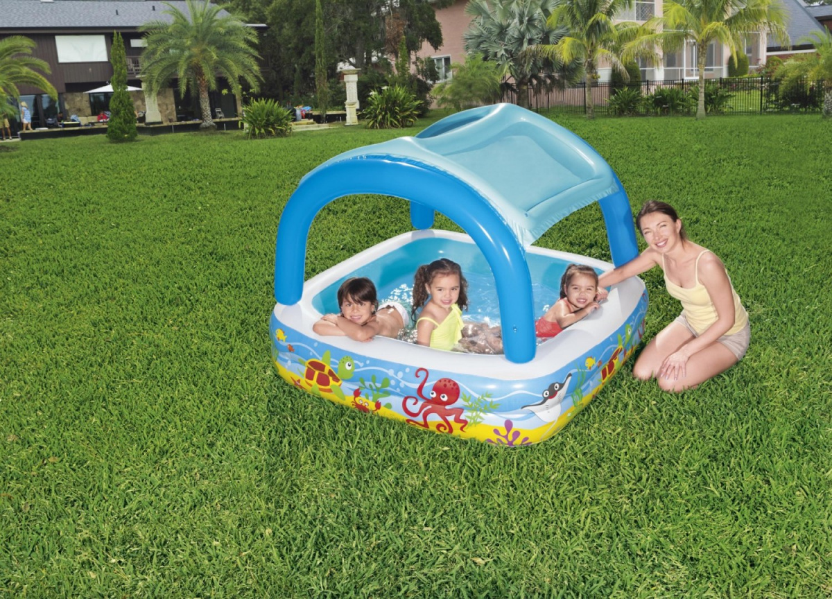 | - bazén - stříška - opravná záplata, - barevná krabička. |