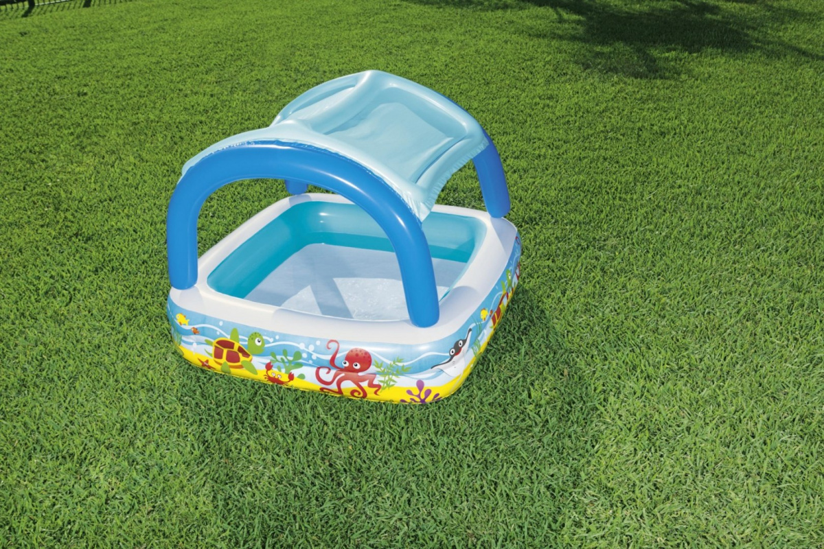 | - nafukovací stříška, snadno odnímatelná, - doporučená náplň 265 litrů, - snadno ovladatelné ventily, | |