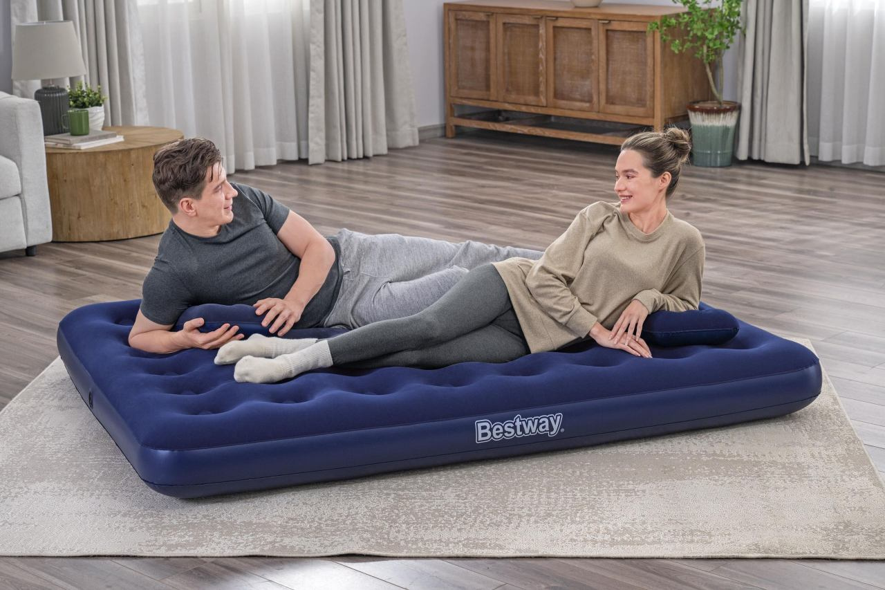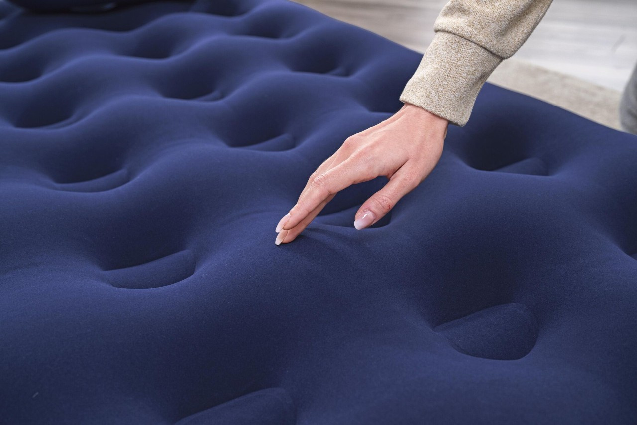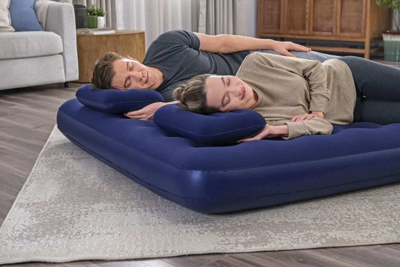 | - odšroubovatelný ventil pro rychlé nafouknutí/vyfouknutí, - velurový povrch, - konstrukce s přepážkami, - 2 velurové polštáře, - ruční pumpa - použití v interiéru i exteriéru. | |
