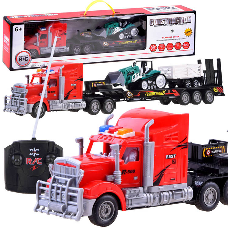 Velký, multifunkční, dálkově ovládaný Tir s přívěsem + tahač s přívěsem poskytne dvojnásobnou mega zábavu všem fanouškům dálkově ovládaných vozidel. Vynikající proporce a design jsou nespornou výhodou této sady 2 v 1. Náklaďák je skvěle osvětlený a během hry poskytuje fantastické efekty, zejména při jízdě s vypnutými světly. K nákladnímu automobilu je připojen přívěs, na kterém lze bezpečně přepravovat vozidla, jako je tahač a přívěs. Souprava se ovládá dálkovým ovladačem. Vůz má nastavení seřízení kol.