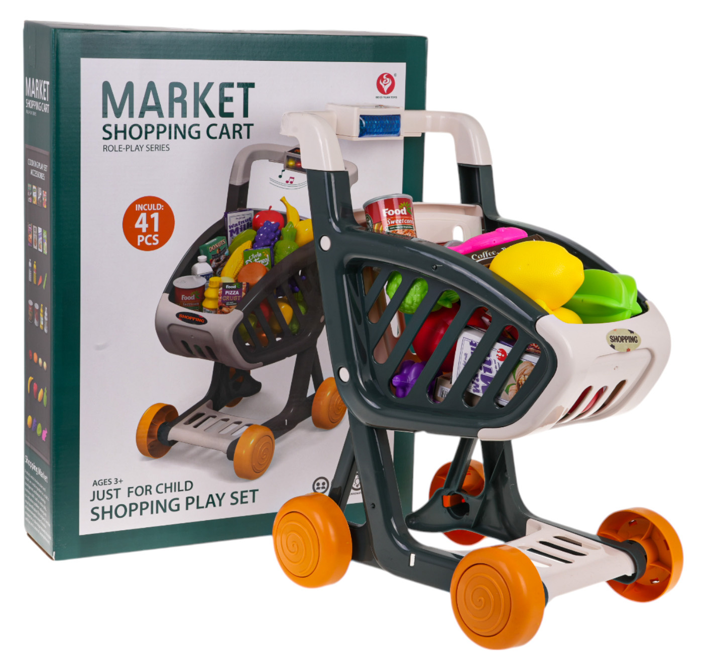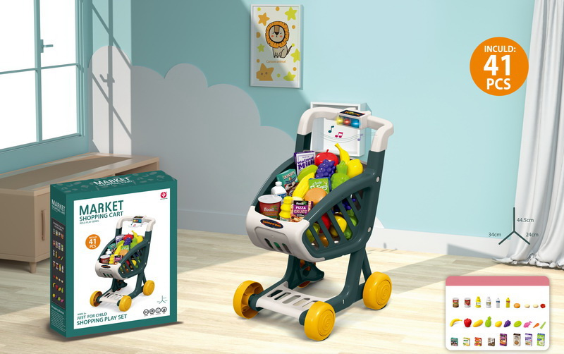 Nákupní vozík s funkcí světel a hudby 41 ks. Zelený