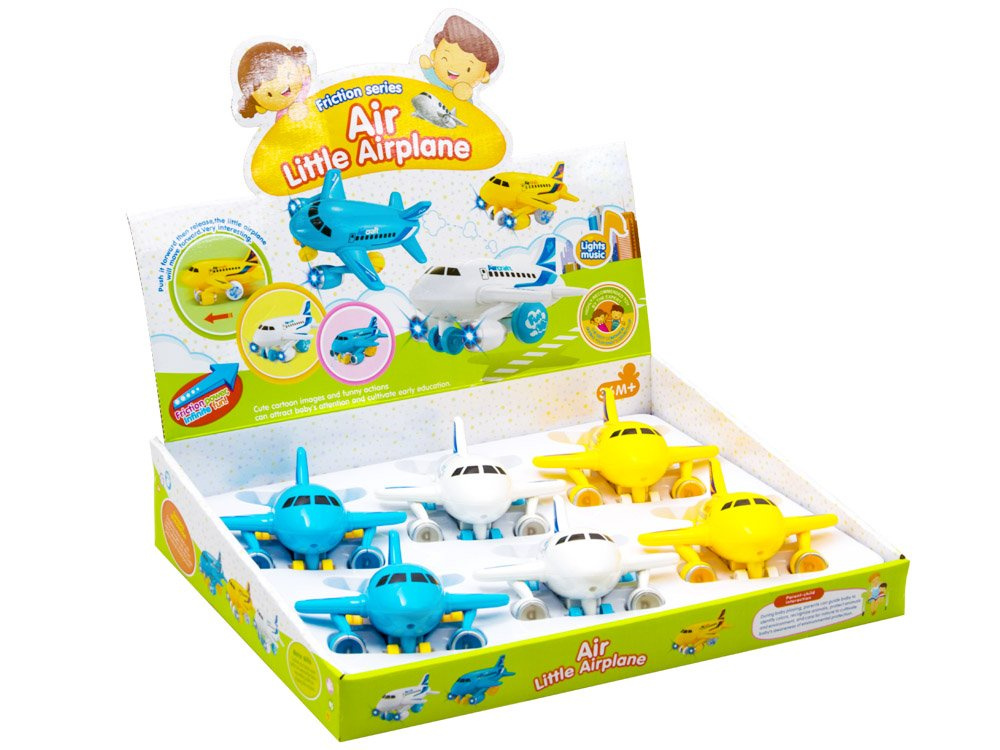 Nové barevné jezdící letadlo pro vaše batole. Krásná hračka, která potěší každého. Tato hračka je určena pro nejmenší děti a znázorňuje veselé letadlo, které jezdí pomocí pohonu umístěného v kolech. Během cesty se letadlo rozsvítí a vydává zvuk startujícího letadla a veselou melodii. Letadlo je skvělé pro učení plazení nebo chůze. Batole bude chtít držet krok s vozidlem. Hračka podporuje vývoj a motorickou koordinaci batolete.