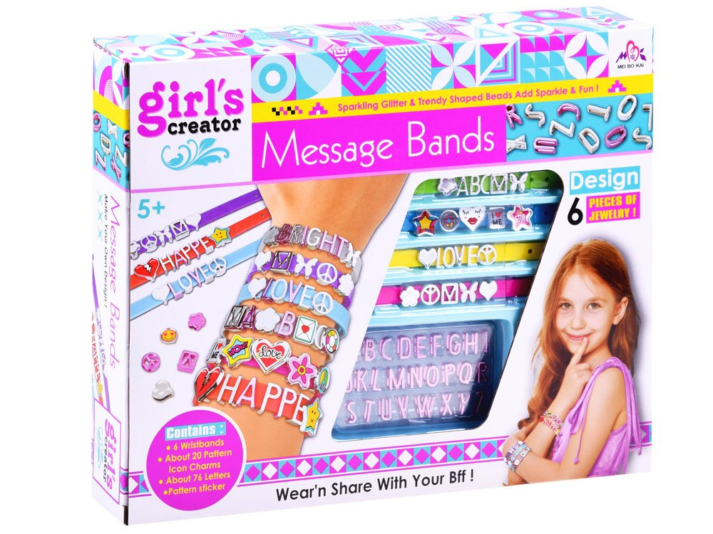 Nová, senzačně barevná, kreativní sada přívěsků, písmenek umožní každé malé módní tvůrkyni vytvořit si vlastní rozkošné prskavky. Vlastnoručně vyrobený náramek je nejcennější a nejkrásnější. Dívka, která má ráda manuální činnosti, bude z takové sady nadšená. Vyrobí náramek pro sebe, pro maminku, pro kamarádku a určitě to bude ten nejkrásnější náramek:)