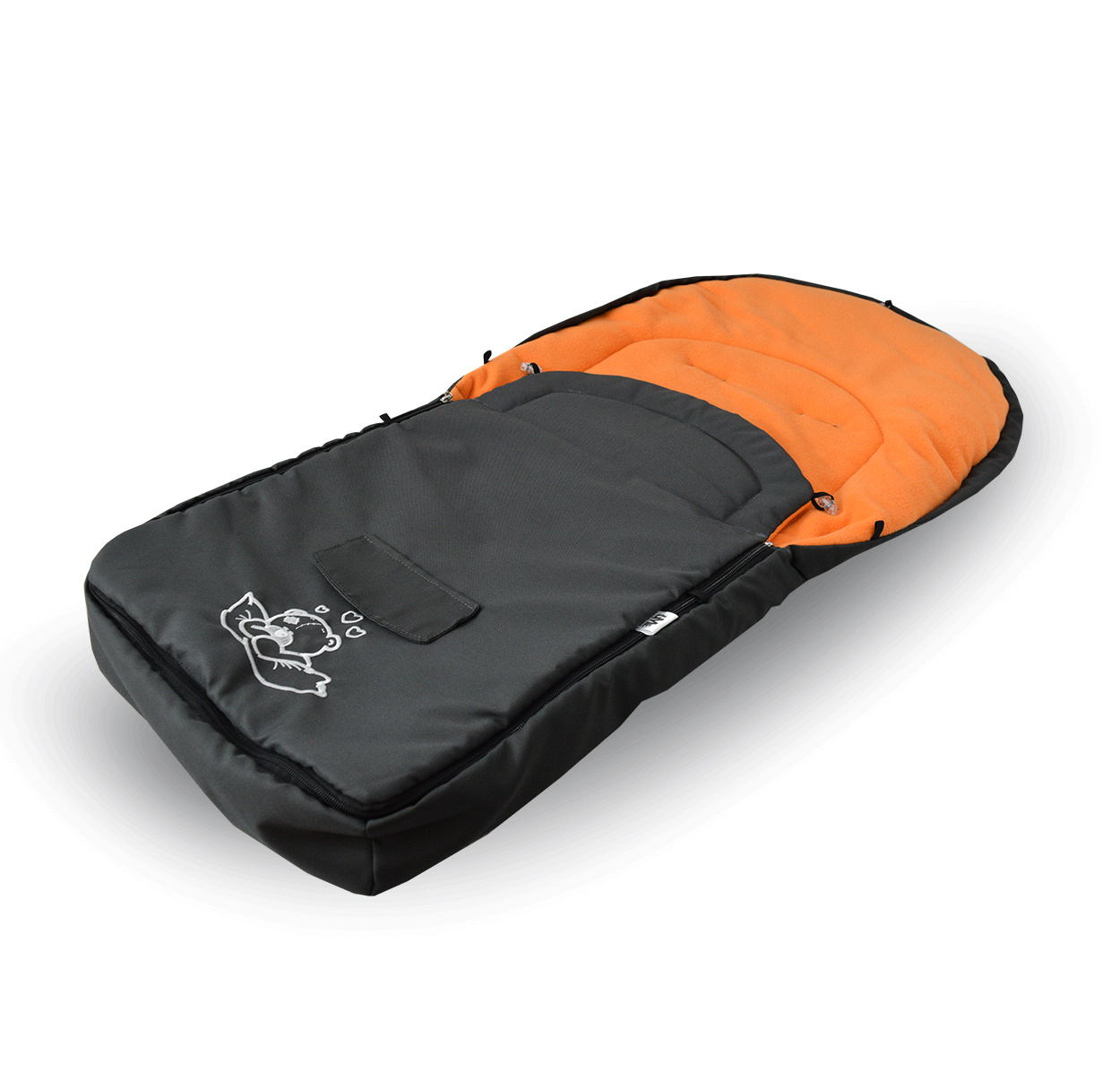 Dětský fusak má rozepínací zip, otvory na 5-bodové bezpečnostní pásy a gumové úchytky umožňující připevnění ke kočárku.