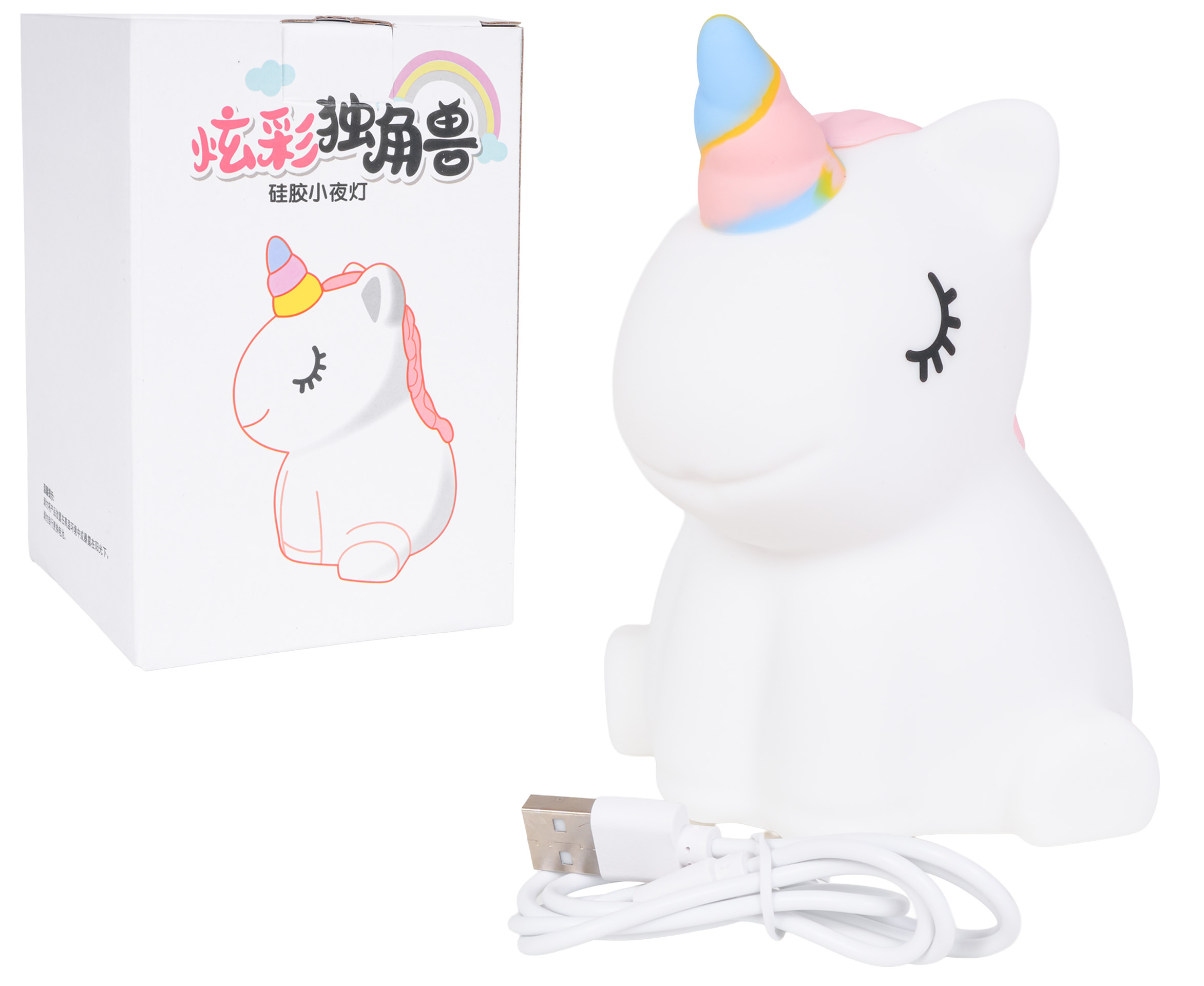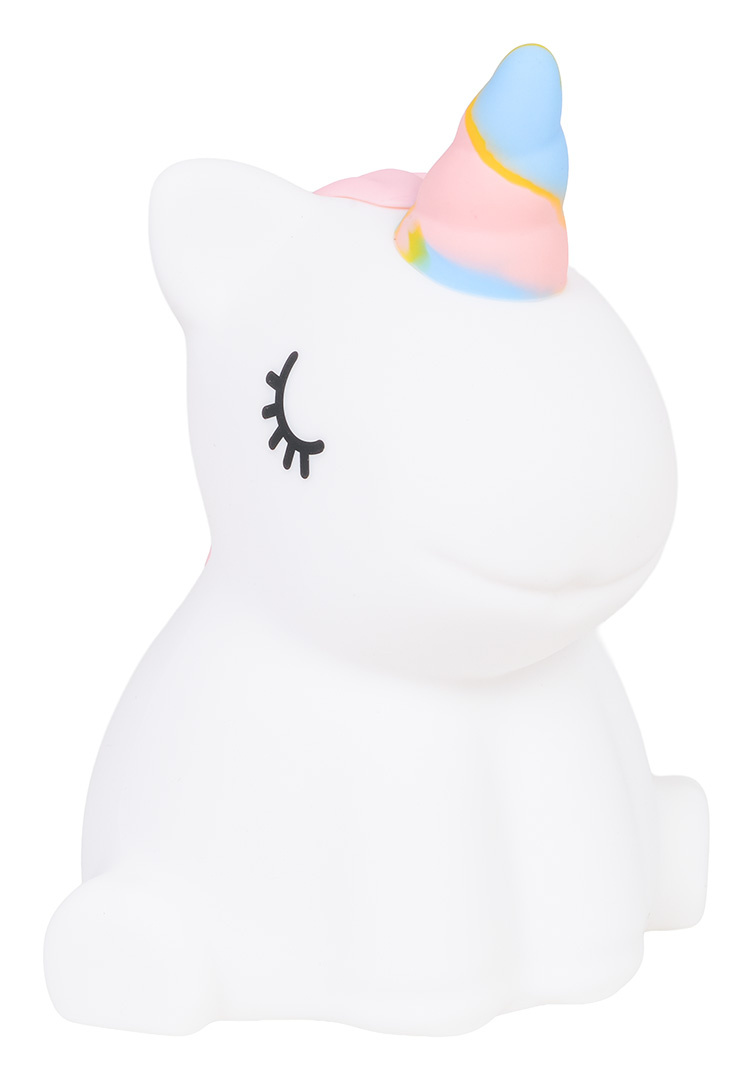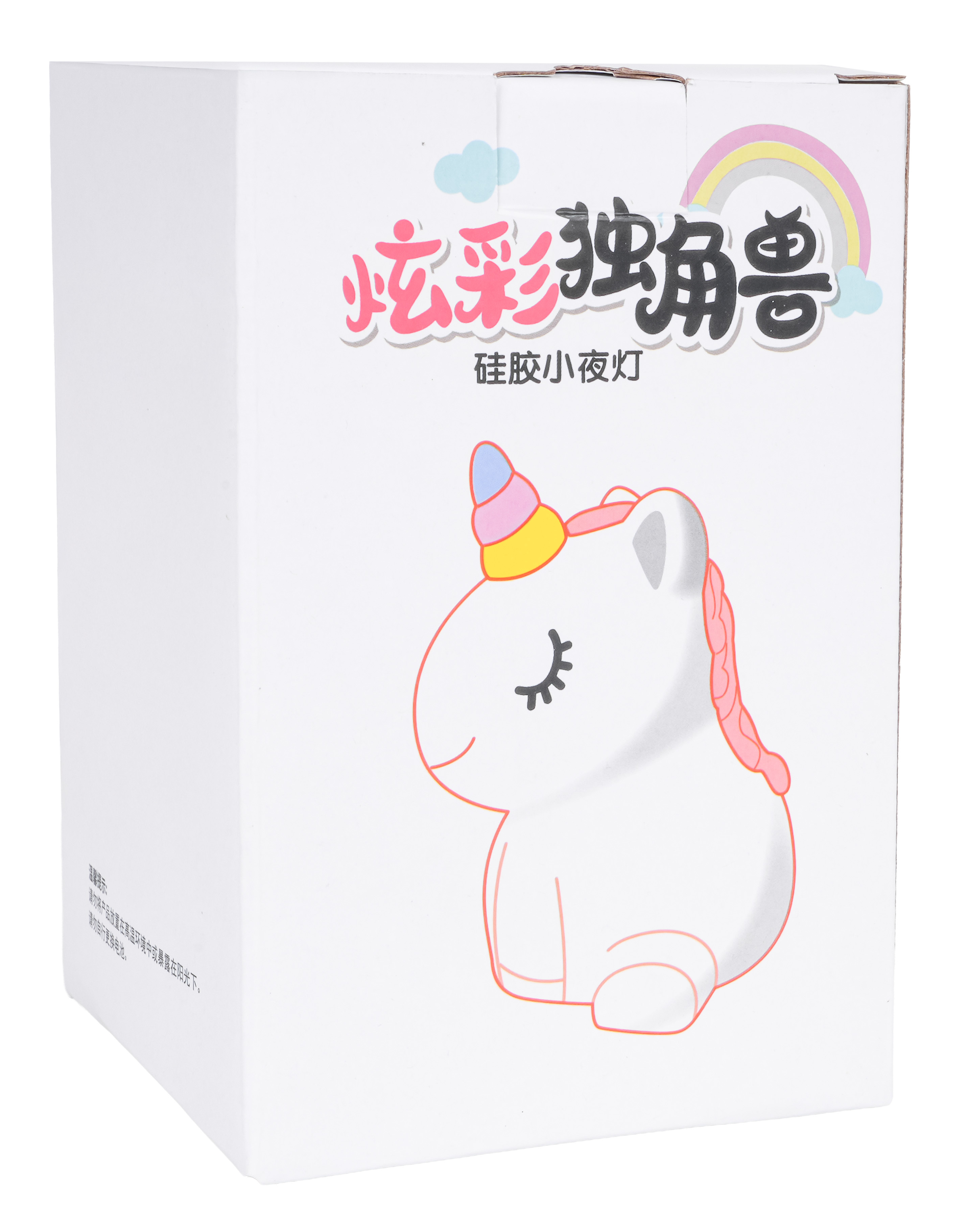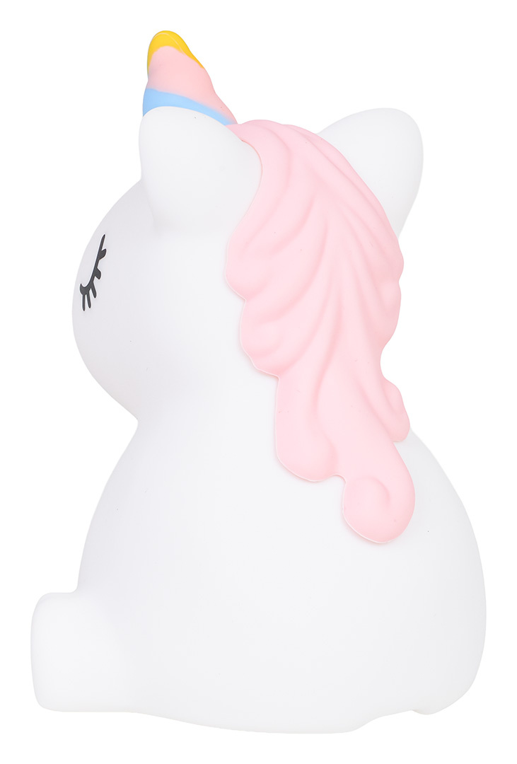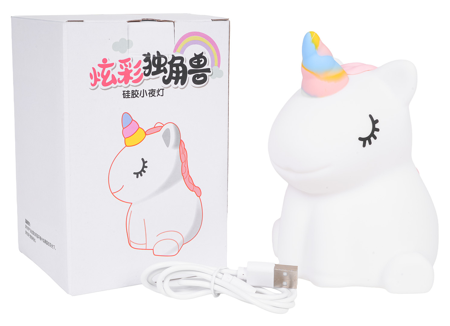 Noční lampička, jednorožec pro děti od tří let. Lampička byla vyrobena ze silikonu bez BPA, měkkého a pohodlného. Dává teplé a jemné světlo, vytváří útulné a bezpečné prostředí. Nabízí tři úrovně regulace jasu (10 %, 50 %, 100 %). Lampička má vestavěnou baterii typu 3,7V, nabíjenou pomocí kabelu USB typu C. Díky dotykovému senzoru můžeš lampu zapínat nebo vypínat, a také regulovat intenzitu světla dotykem na jakémkoli místě.