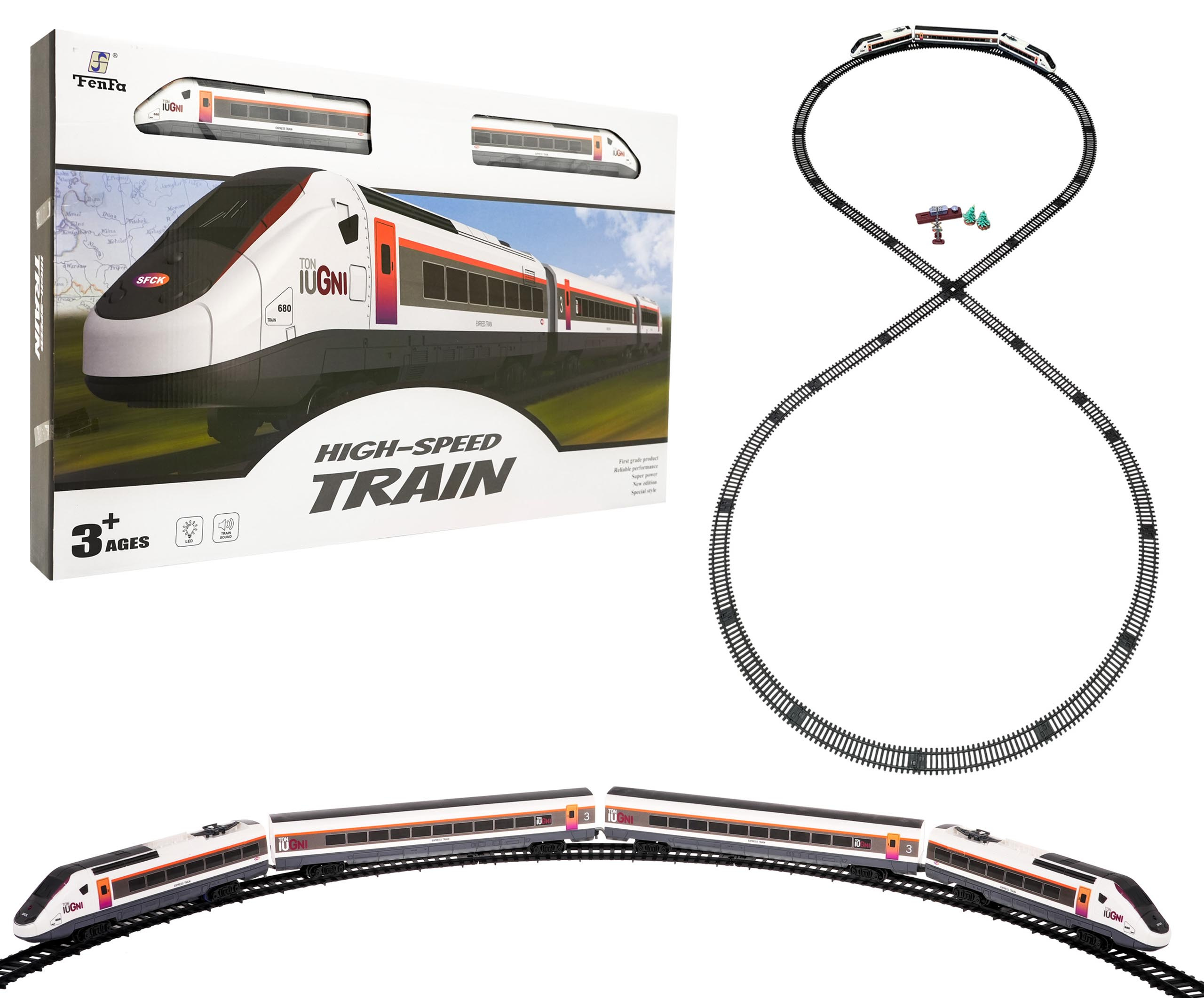 Obrovská železnice s kolejemi je vhodná pro děti od 3 let. Dráha se skládá ze dvou lokomotiv a dvou vagonů. Jedna z lokomotiv je napájena 2 bateriemi AA 1,5 V, baterie nejsou součástí balení. Vlak se rozjíždí. Během jízdy jsou slyšet charakteristické zvuky vlaku a na přední straně lokomotivy svítí červená LED dioda. Sada obsahuje skladby, které lze libovolně kombinovat. Kolejnice mají výrazný a snadný způsob připojení, takže jsou bezpečné a robustní pro použití. vláček i koleje jsou vyrobeny z nejkvalitnějšího plastu, který zajišťuje dlouhou životnost a odolnost jednotlivých prvků sady.