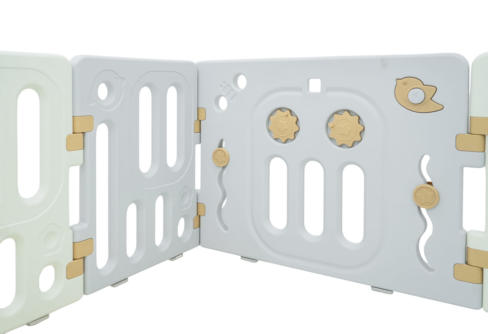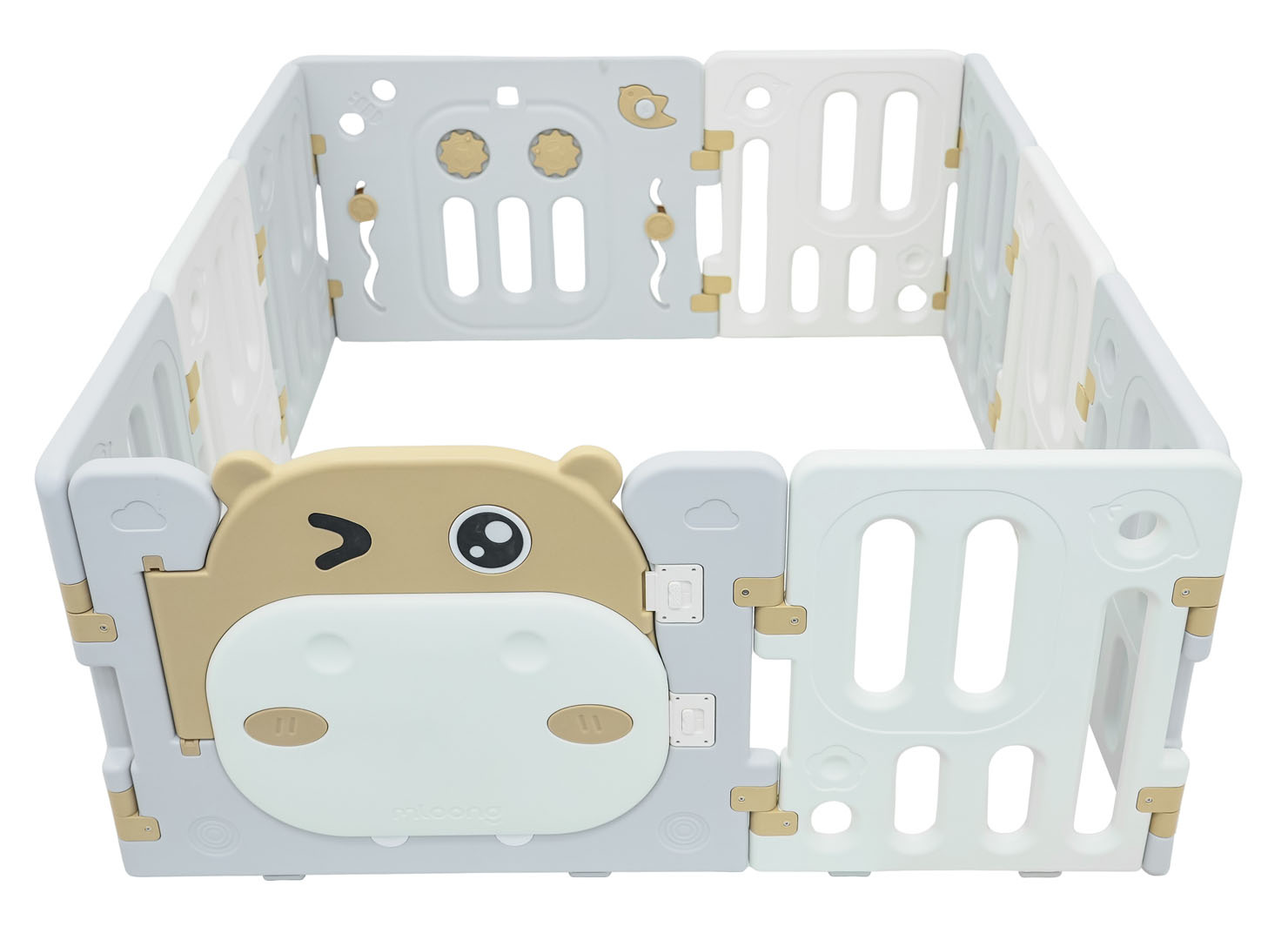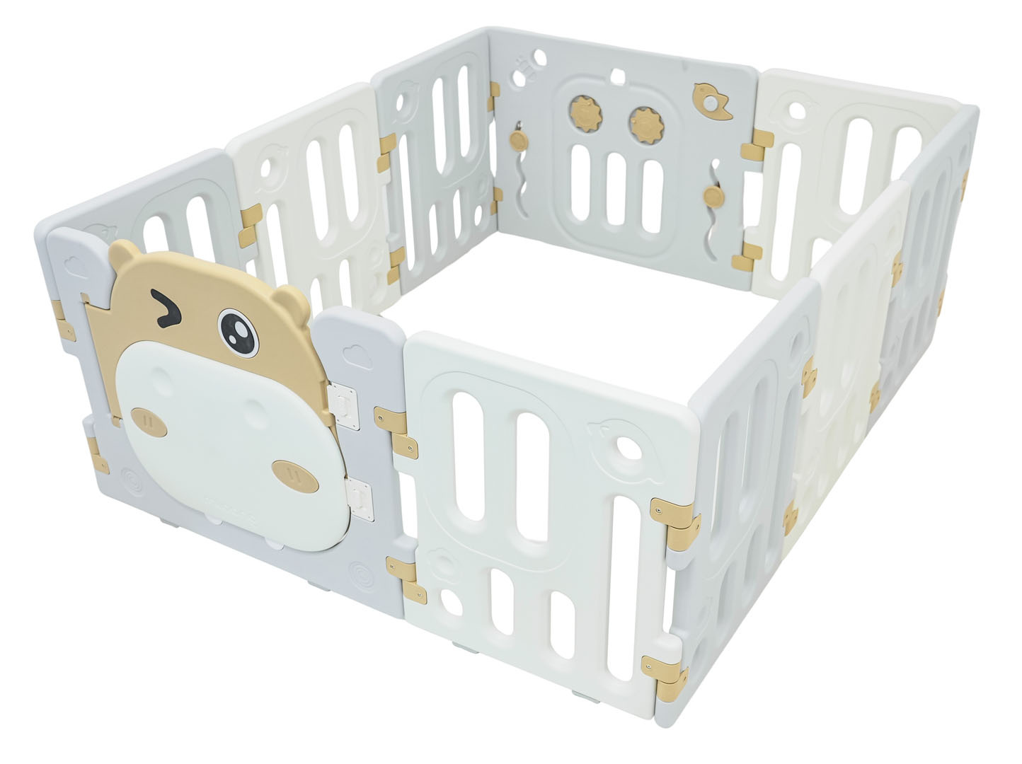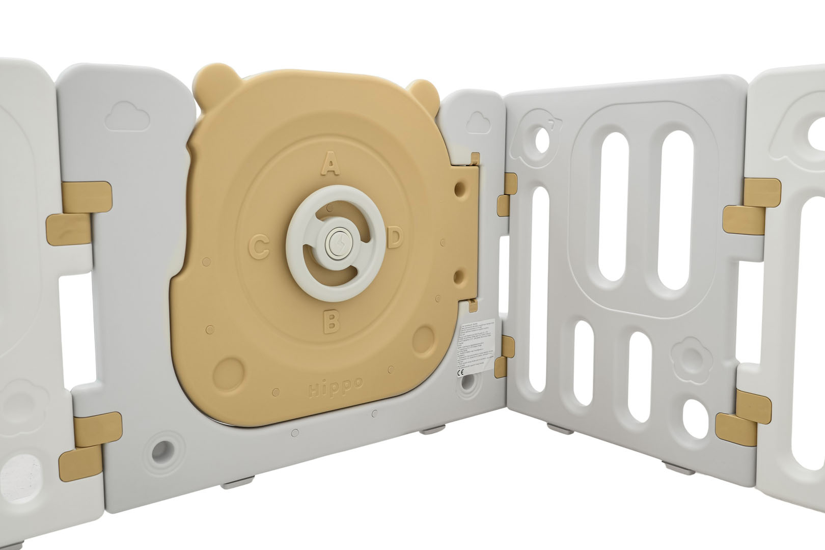 Velká, praktická, skládací modulární ohrádka pro dítě od 6. měsíce života. Z ohrádky můžeme postavit libovolnou konstrukci podle vlastních představ, velmi snadno se skládá a rozkládá, je stabilní a má hladké hrany. Vnitřek ohrádky je vybaven manipulačními prvky, jako jsou posuvné kolečko, ozubená kola, pískátko nebo volant. Sada je vyrobena z odolných a netoxických materiálů, skládá se z 10 panelů. Panel dveří se blokuje zvenku, což znemožňuje otevření dveří dítětem. Protiskluzové nožky zabraňují posouvání ohrádky. V ohrádce bude mít vaše děťátko dostatek prostoru pro volný pohyb a zároveň bude v bezpečí. V sadě se také nachází koš na míčky a 40 míčků.