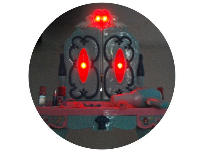Toaletka má uzamykatelné dvířka, když stisknete srdce nad zrcadlem, rozsvítí se spolu s detaily na dveřích a uslyšíte také krásnou melodii.