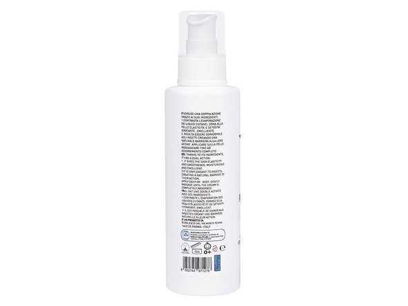 Bezpečná emulze pro děti s dvojím účinkem. Díky obsaženým složkám ( olej z indického medu, Aloe Vera) hydratuje pokožku a zároveň ji chrání před ztrátou vlhkosti. Dodává pleti pružnost a hedvábnost, zjemňuje ji tím, že chrání její přirozenou hydrolipidovou bariéru. Emulze je pro hmyz nepříjemná a vytváří přirozenou překážku jeho působení.